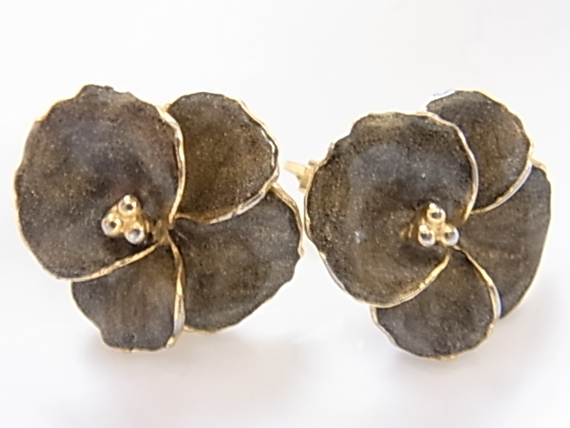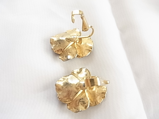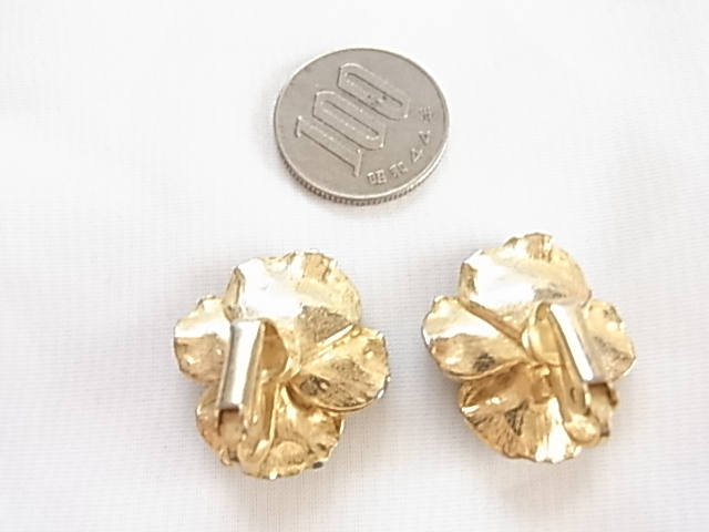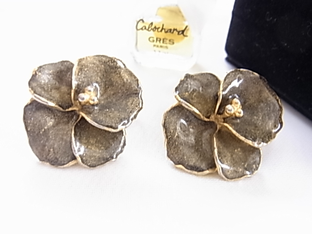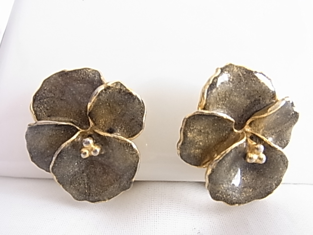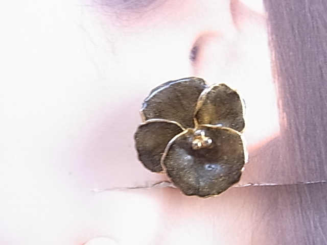 ビンテージ/ヴィンテージ セピア色 りかんちゃいろ 璃寛茶色トーン お花のデザイン フラワーモチーフ エナメル装飾 イヤリング▽