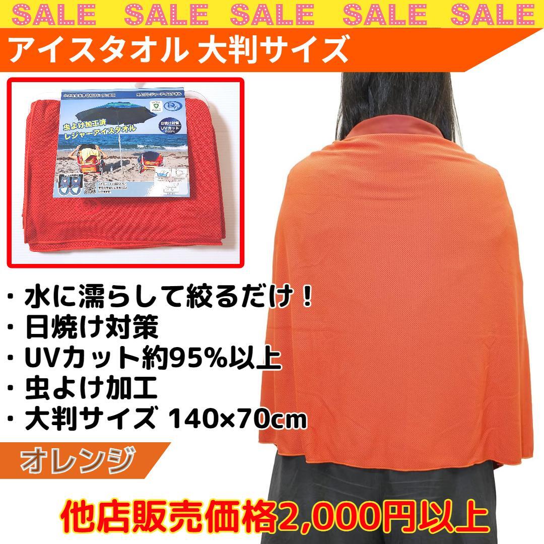 新品未使用 超特価!アイスタオル 大判サイズ オレンジ UVカット95% 虫よけ加工 クールタオル です。