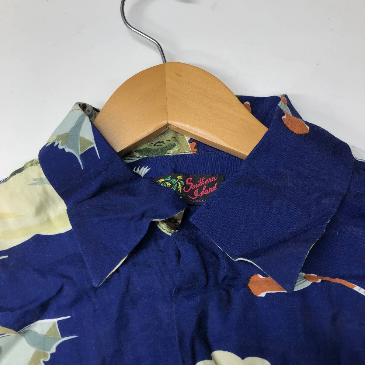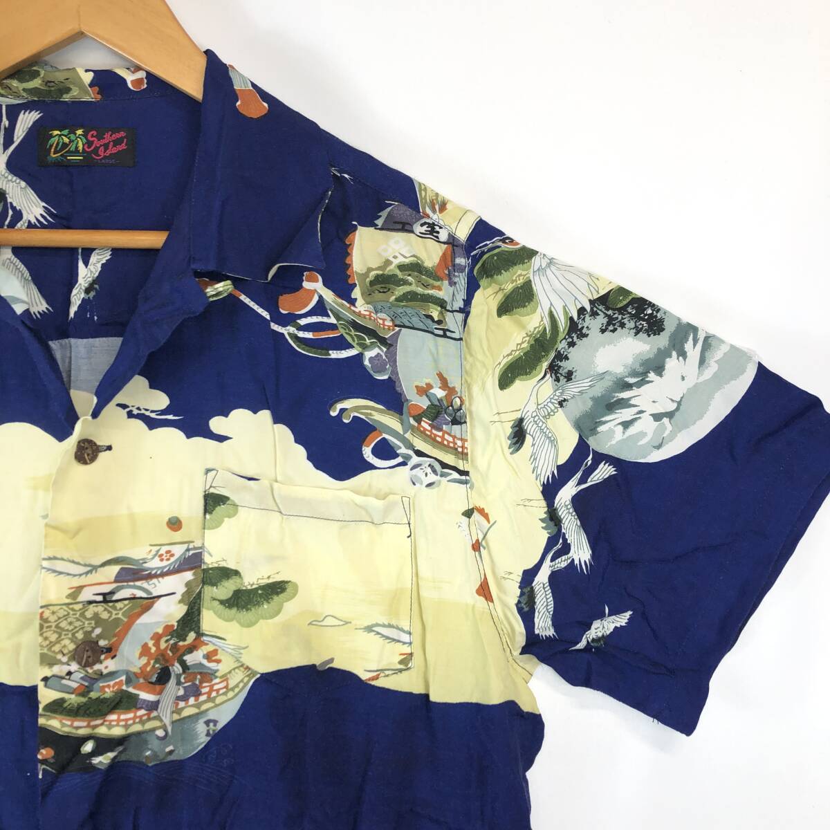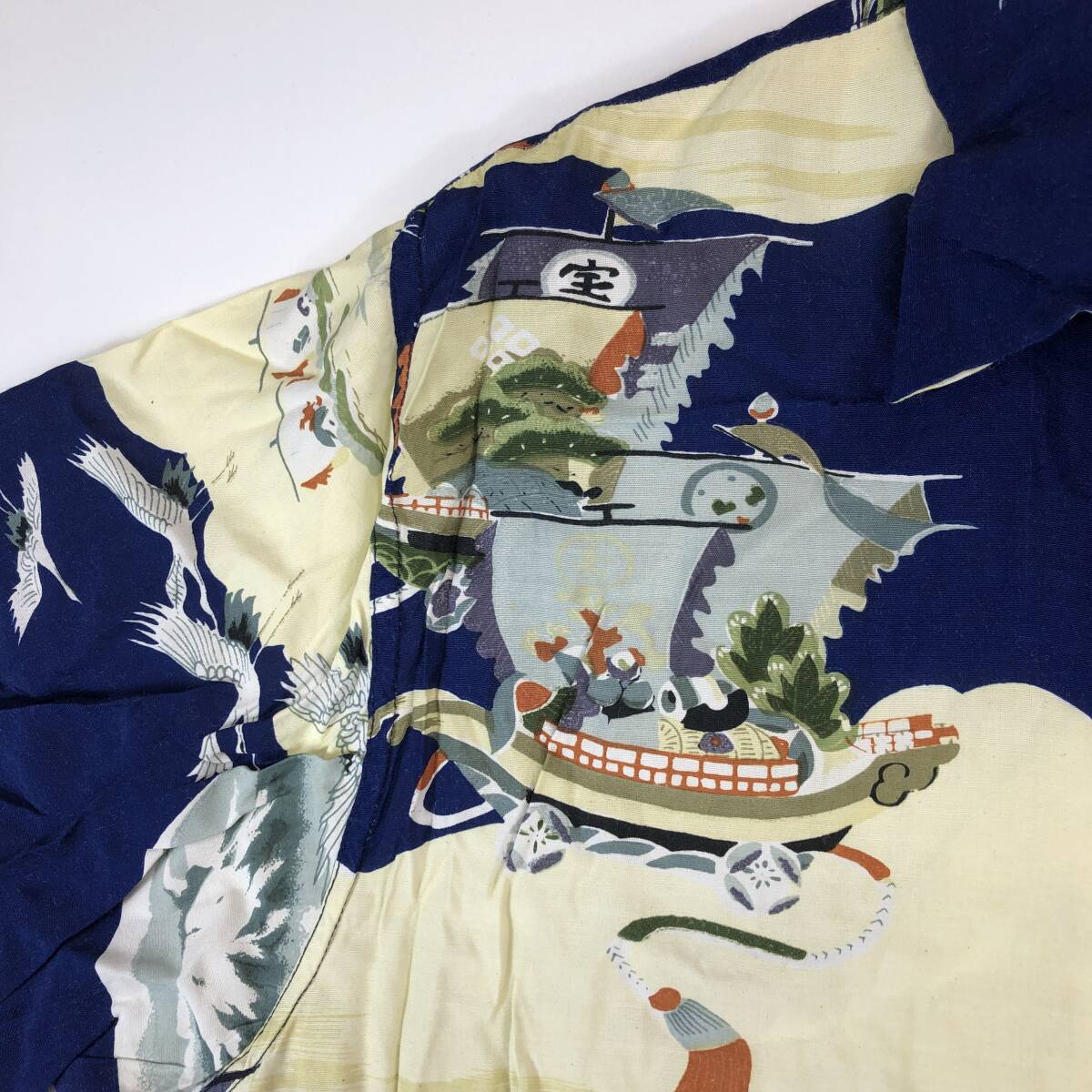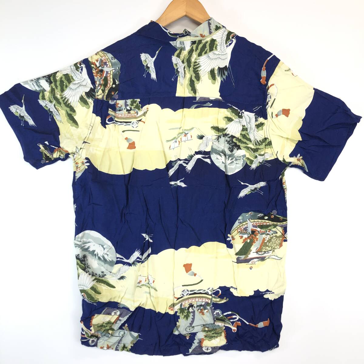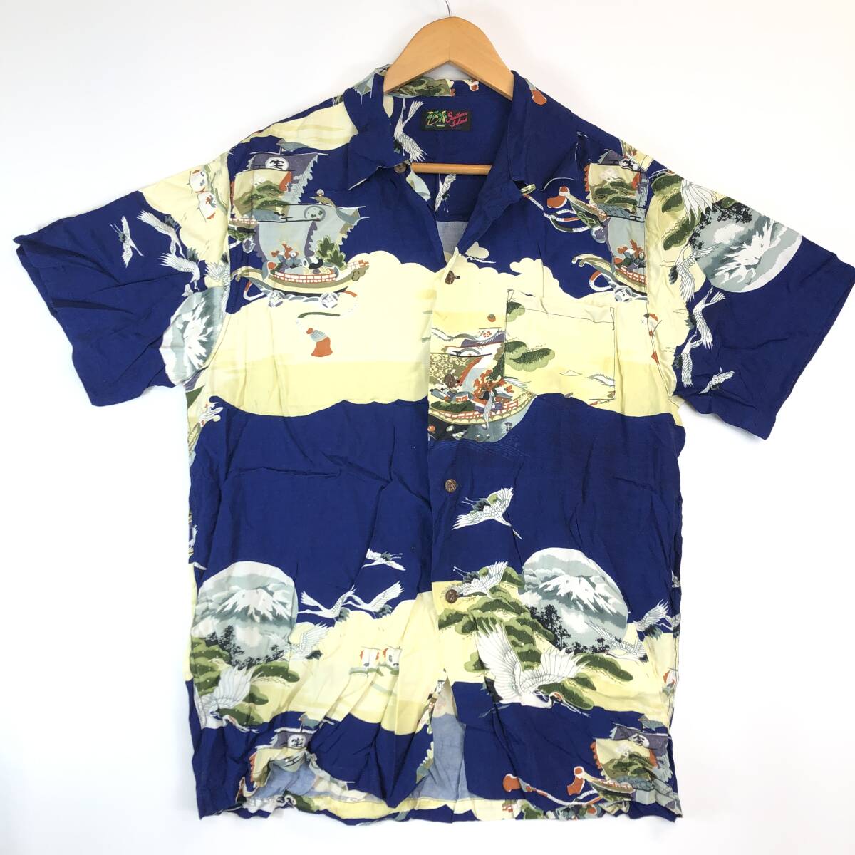 90s 80s southern island レーヨン 半袖開襟シャツ Lサイズ 鶴 船