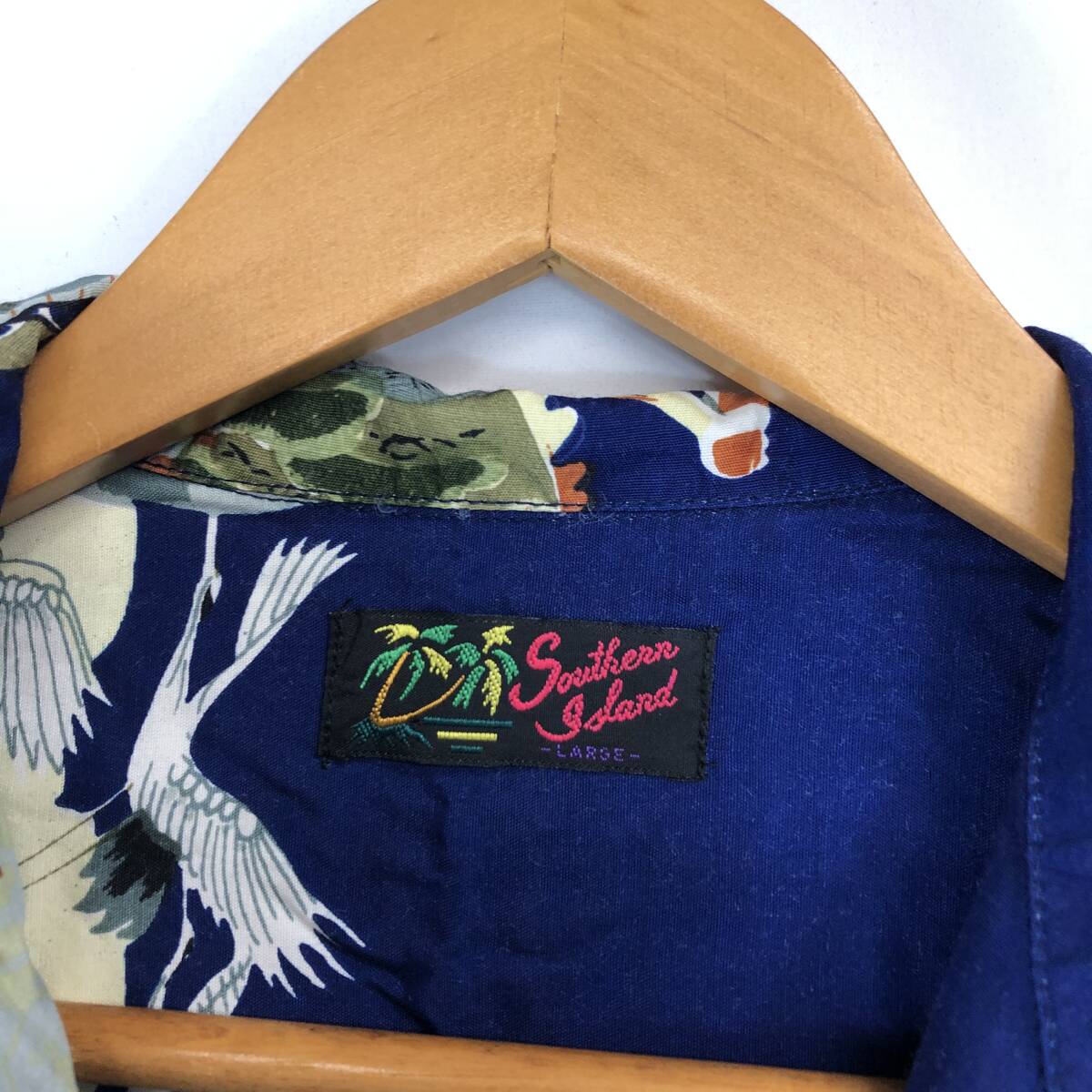 90s 80s southern island レーヨン 半袖開襟シャツ Lサイズ 鶴 船の出品です。