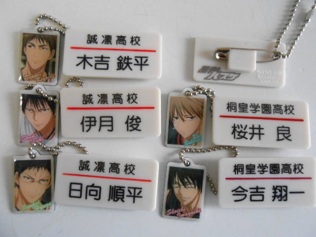 1.日向順平 2.伊月俊 3.木吉鉄平 4.森山由考 5.宮地清志 6.今吉翔一 7.桜井良 8.福井健介 9.花宮真 ◇裏面に安全ピン付きなので 実際のバッジのようにつけられる! |