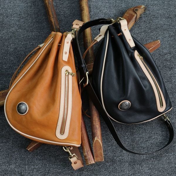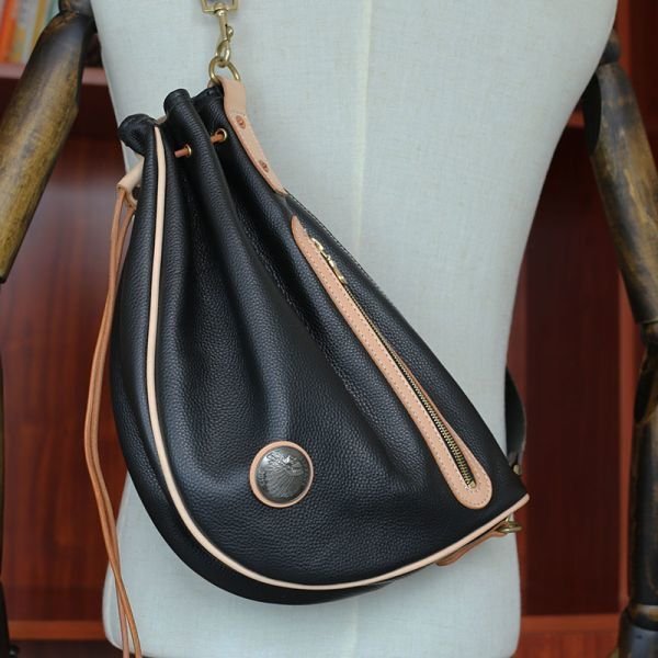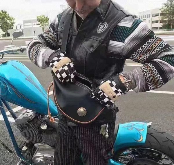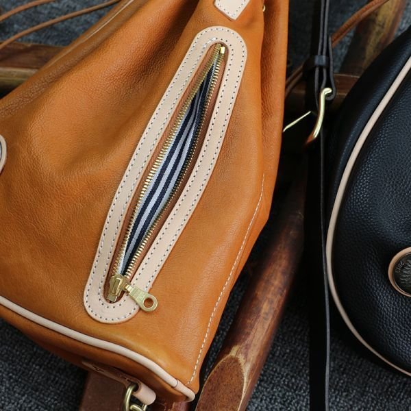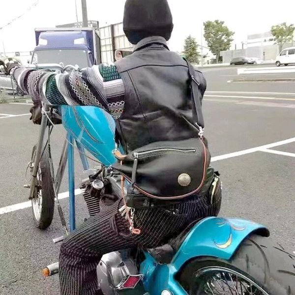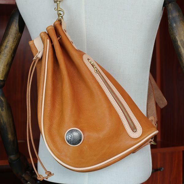 レザー本革コンチョ付きボディーバッグ☆牛皮 ネイティブアメリカン インディアン 鞄 バイク バイカーズバッグ ブラウン