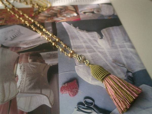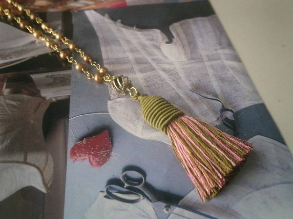 ボヘミアン・ガール・・シリーズです♪やさしい童話・・シックなピンクやモスグリーンの色合いのタッセルとシャンパンゴールドの淡水パールのネックレスです♪6ミリ位のシャンパンゴールドの淡水パールはさりげなく華やかな表情です♪長さは全長93センチ位で調節自由です♪トップはタッセルに透かしチャームを合わせて9センチ位です♪お揃いのイヤリングも出品しています♪♪シンプルで飽きのこないいつまでも着けられるデザインを考えて作りました♪ハンドメイドをご理解頂いてノークレーム、ノーリターンでお願いします