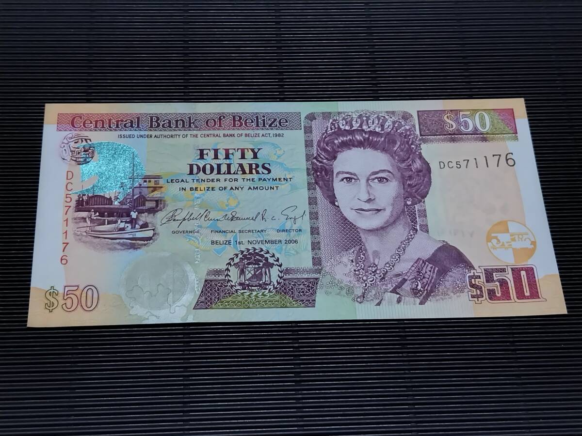 ベリーズ 50 Dollars札 コレクション向けピン札 2006年 甘い未使用~未使用マイナス エリザベス女王 #DC571176