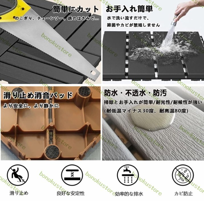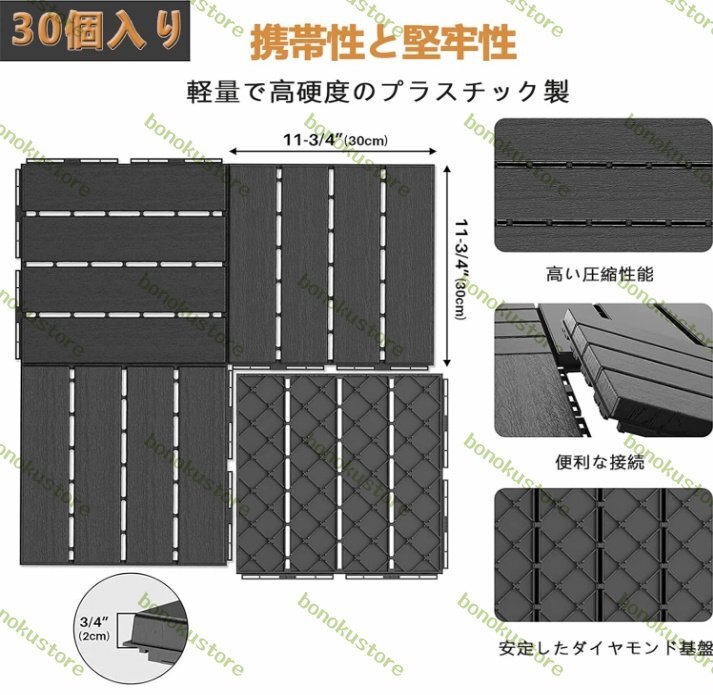 30枚入り デッキパネル ポリプロピレン製 ウッドパネル 連結モジュール式 ジョイントパネル ベランダタイル 厚さ2cm 屋内・屋外用