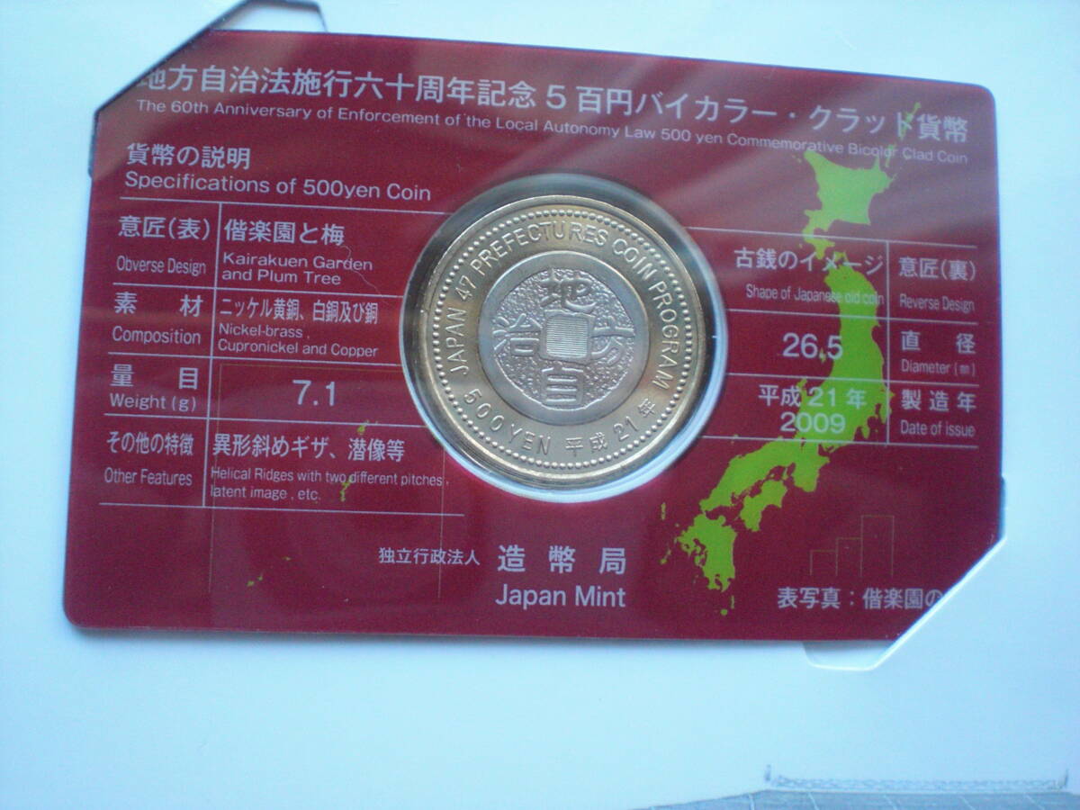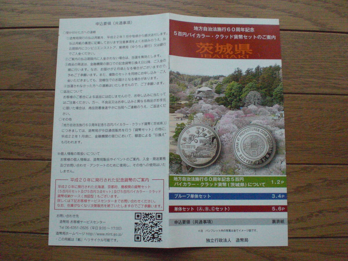 地方自治施行六十周年記念5百円バイカラー・クワッド貨幣単体セットBセット 茨城県