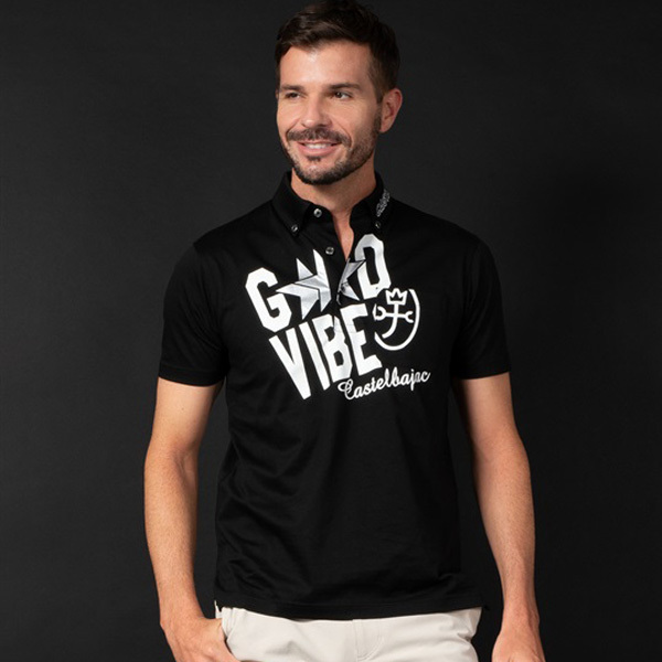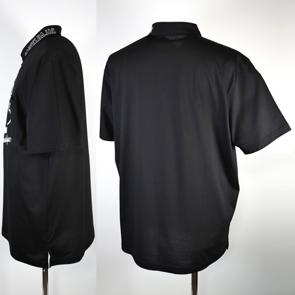 | ■形状/ 衿にもロゴプリントが施されたおしゃれなボタンダウン半袖ポロシャツです。 肌に触れたとき、冷たく感じる接触冷感加工で光沢感があります。 |