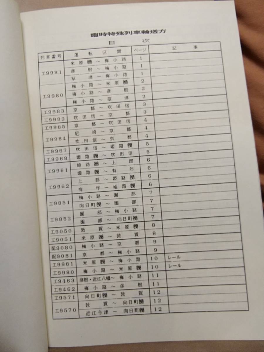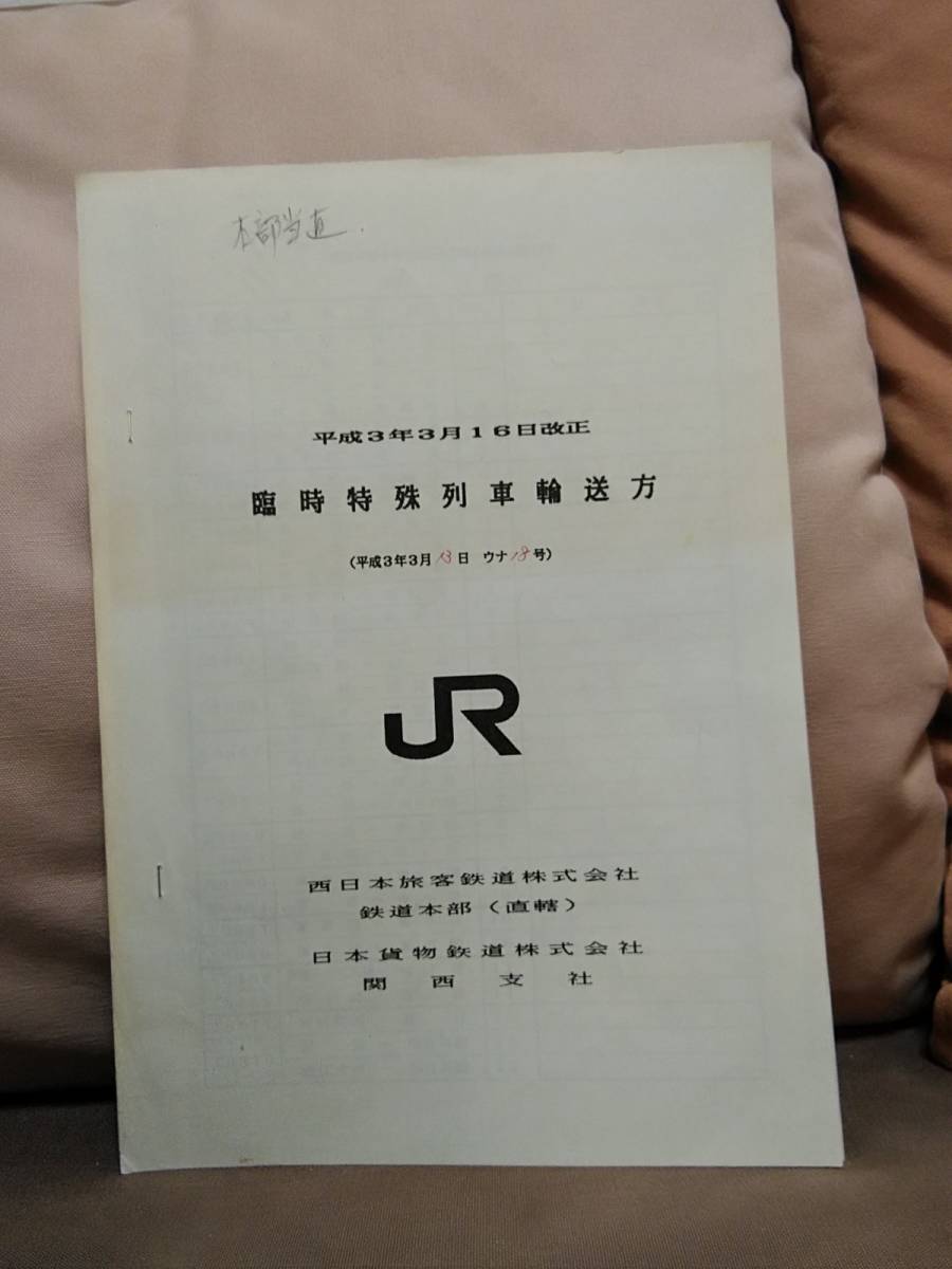 【鉄道資料】 平成3年3月16日改正 臨時特殊列車輸送方 JR西日本鉄道本部 JR貨物関西支社  をお譲りします。