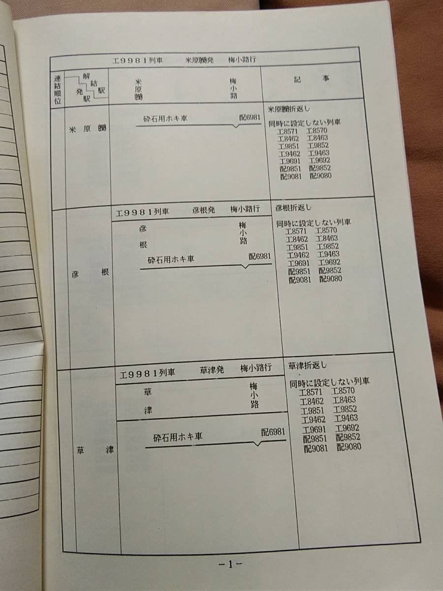 【鉄道資料】 平成3年3月16日改正 臨時特殊列車輸送方 JR西日本鉄道本部 JR貨物関西支社 国鉄 日本国有鉄道 サボ ホキ工臨 チキ工臨