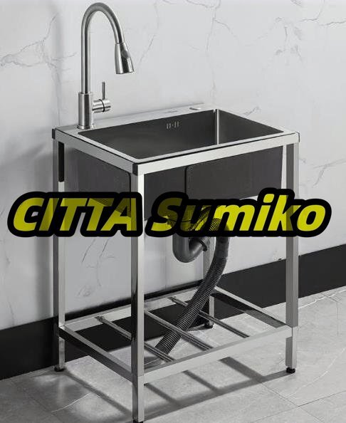 特售!ステンレス製流し台 台所 1槽シンク 食器洗いシンク 業務用 家庭用 食器洗い器 冷熱蛇口/スタンド付き
