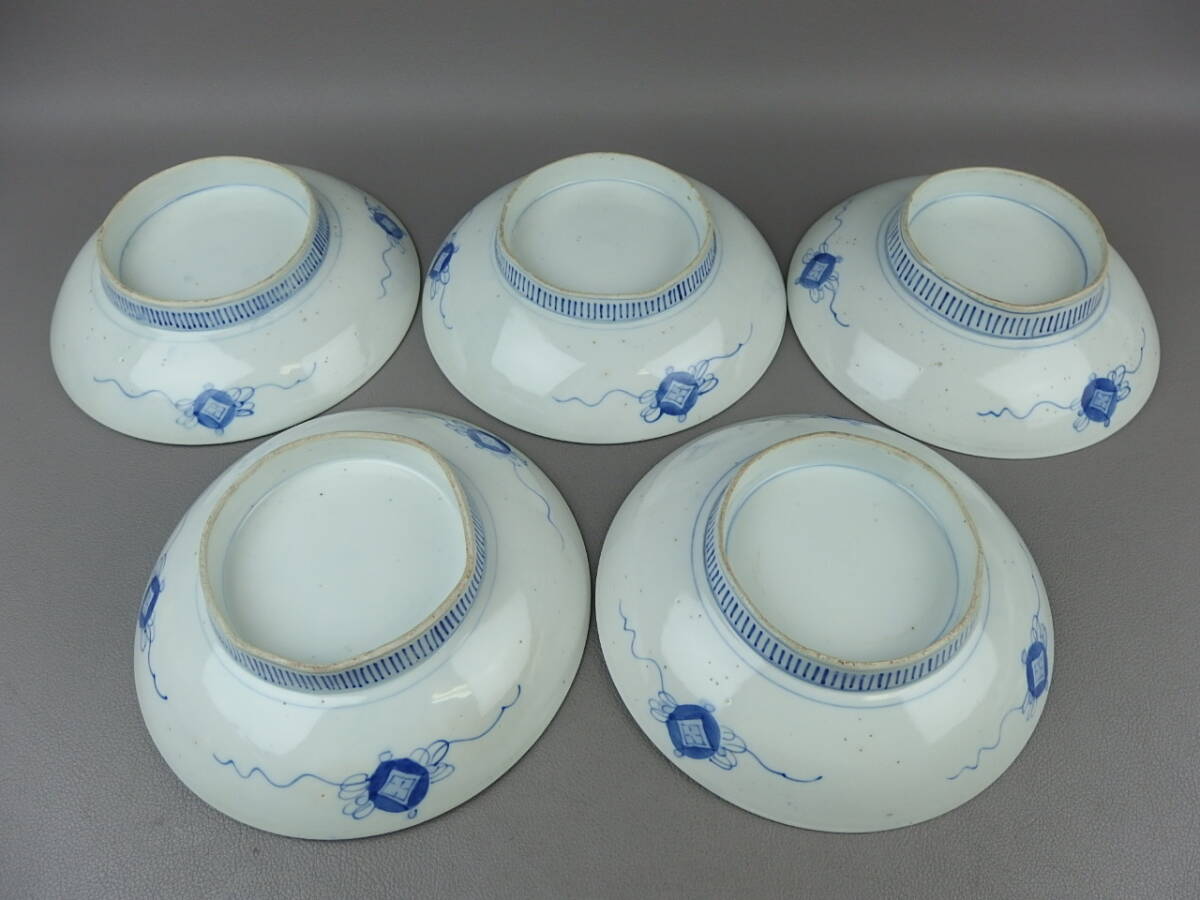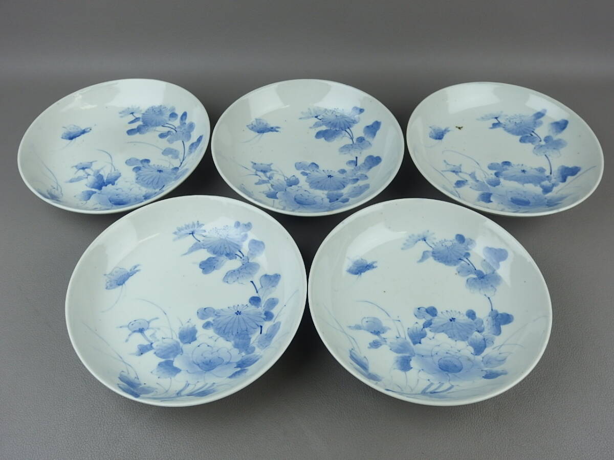 【骨董・茶道具】★鍋島焼?伊万里焼?★★染付花蝶文皿 5客 fl036sl.8 和食器