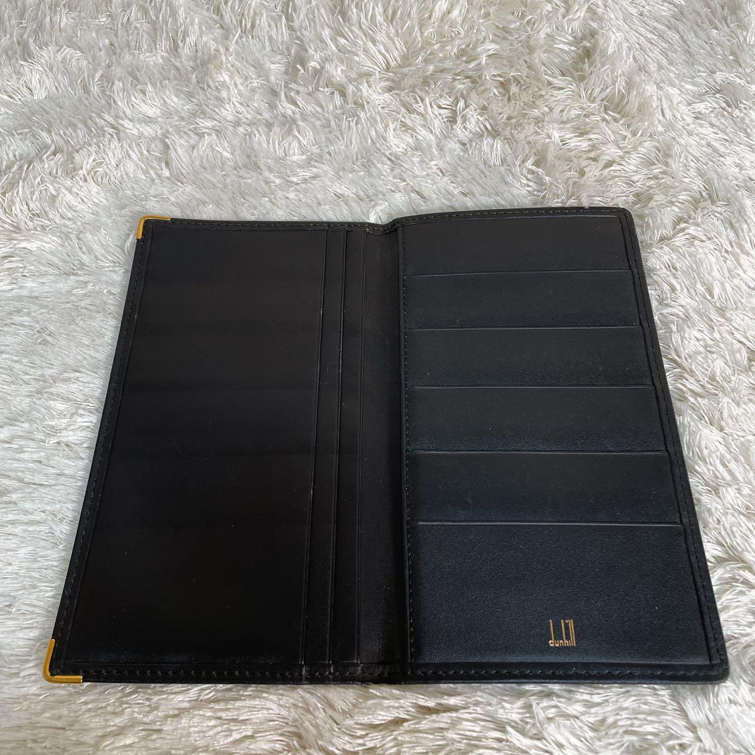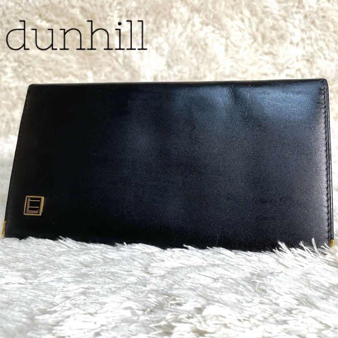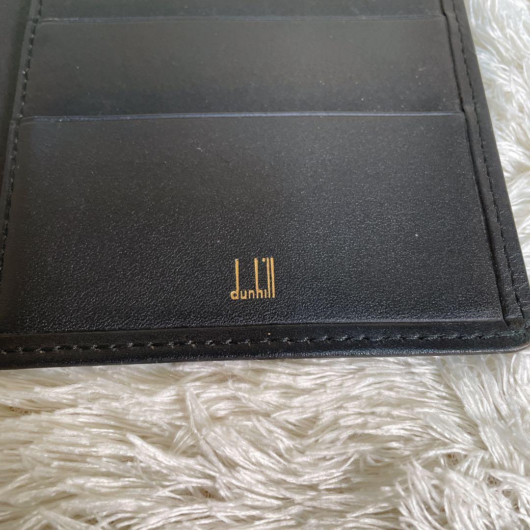 dunhill ダンヒル 二つ折り長財布 メンズ 札入れ 名刺入れ レシート入れロゴプレート黒 ブラック系 スペイン製