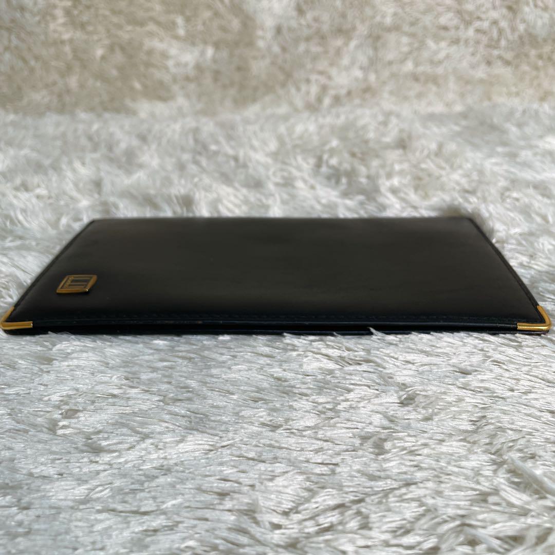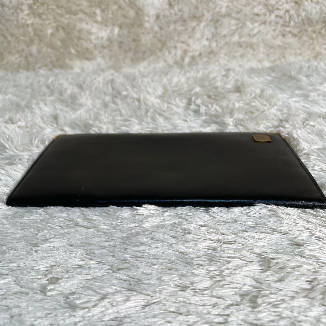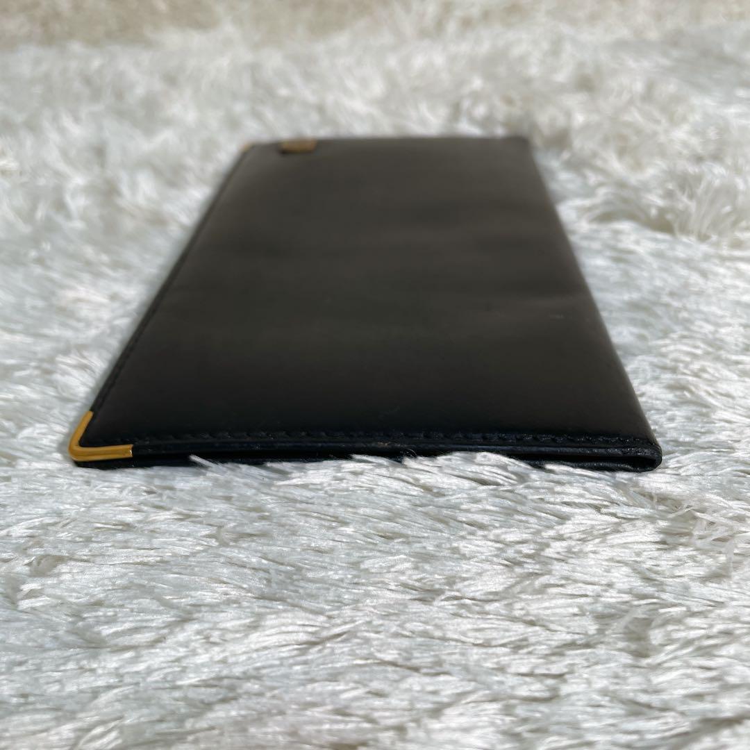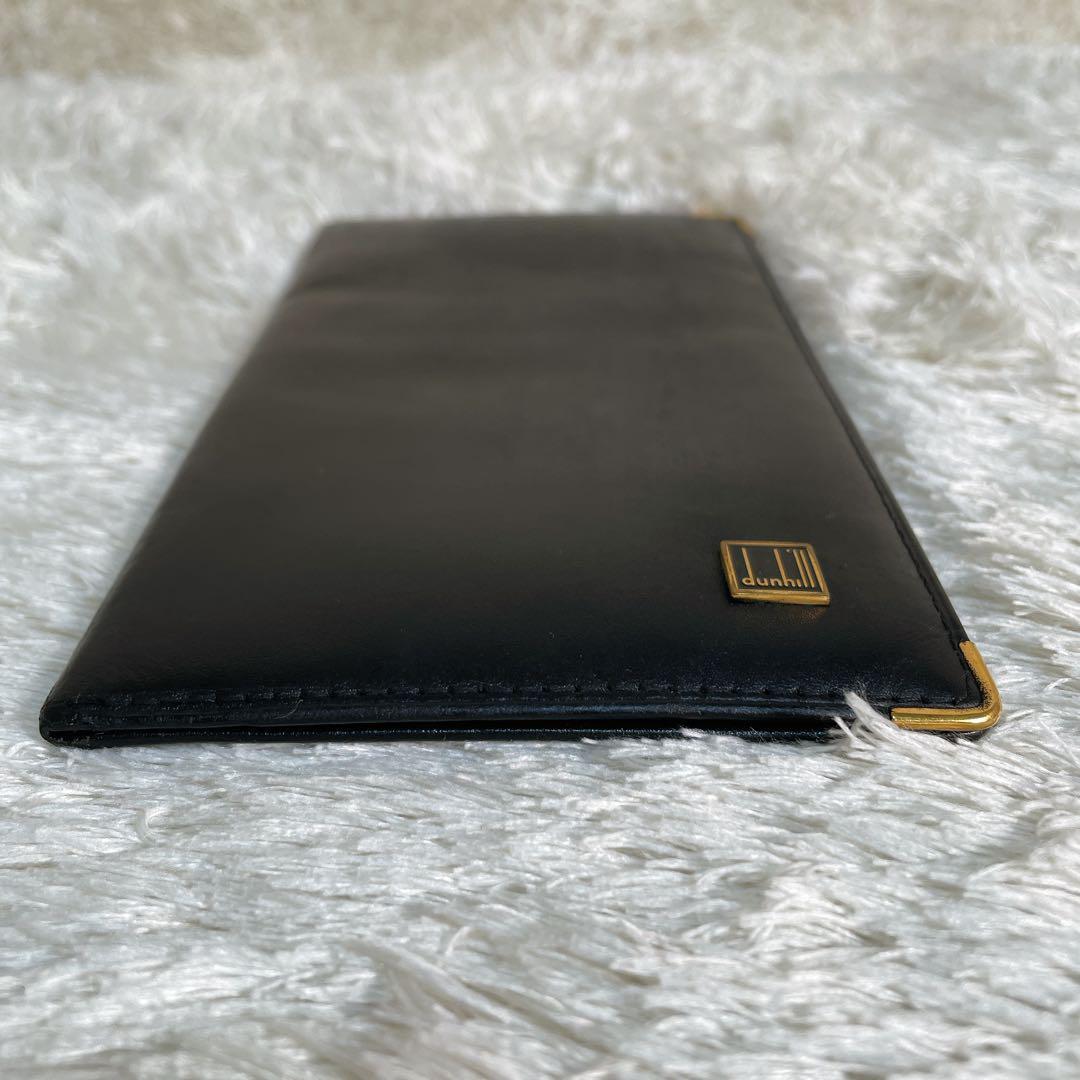 dunhill ダンヒル 二つ折り長財布 メンズ 札入れ 名刺入れ レシート入れロゴプレート黒 ブラック系 スペイン製