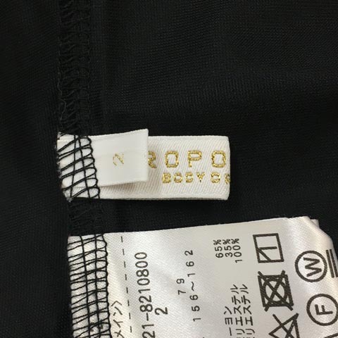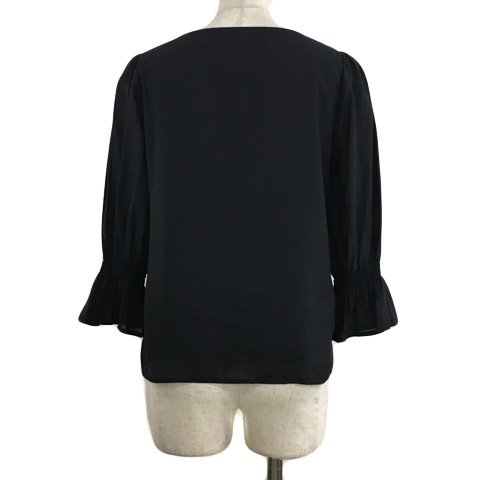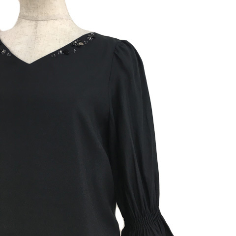 プロポーション ボディドレッシング ブラウス カットソー プルオーバー Vネック 無地 ビーズ ビジュー 七分袖 2 黒 ブラック レディース