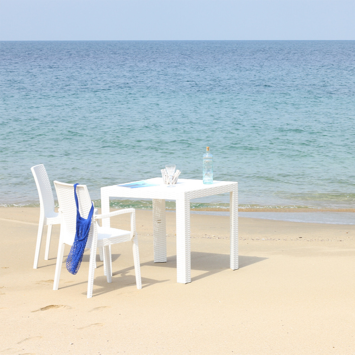 イタリア製 ガーデンチェア ラタン風 2脚セット ホワイト【新品】【送料無料(一部を除く)】