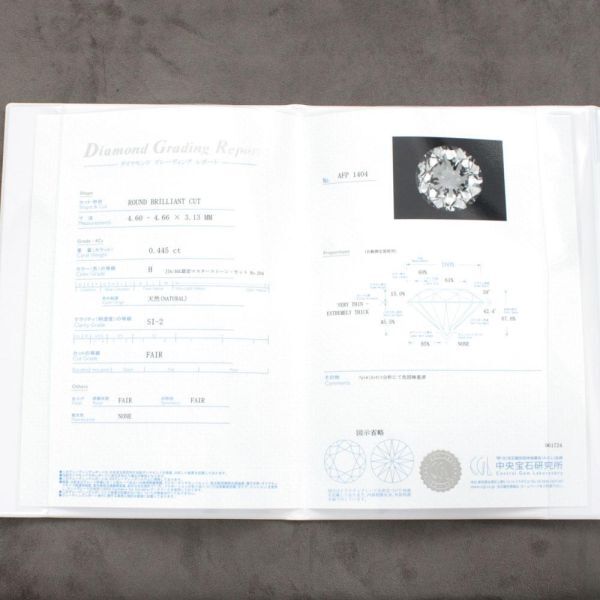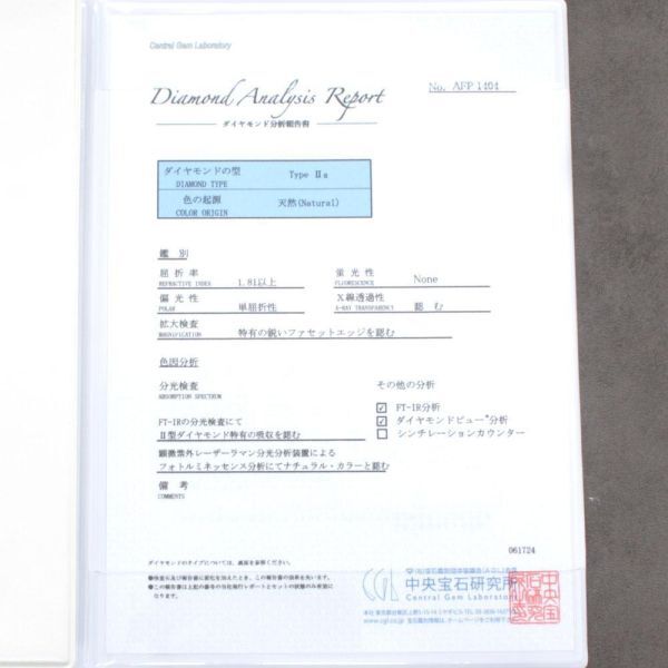 【製造大卸☆最安値】Type 2A ! 無不純物! 究極の純粋 0.445ct 天然 ダイヤモンド ルース 【 中央宝石研究所鑑定 】