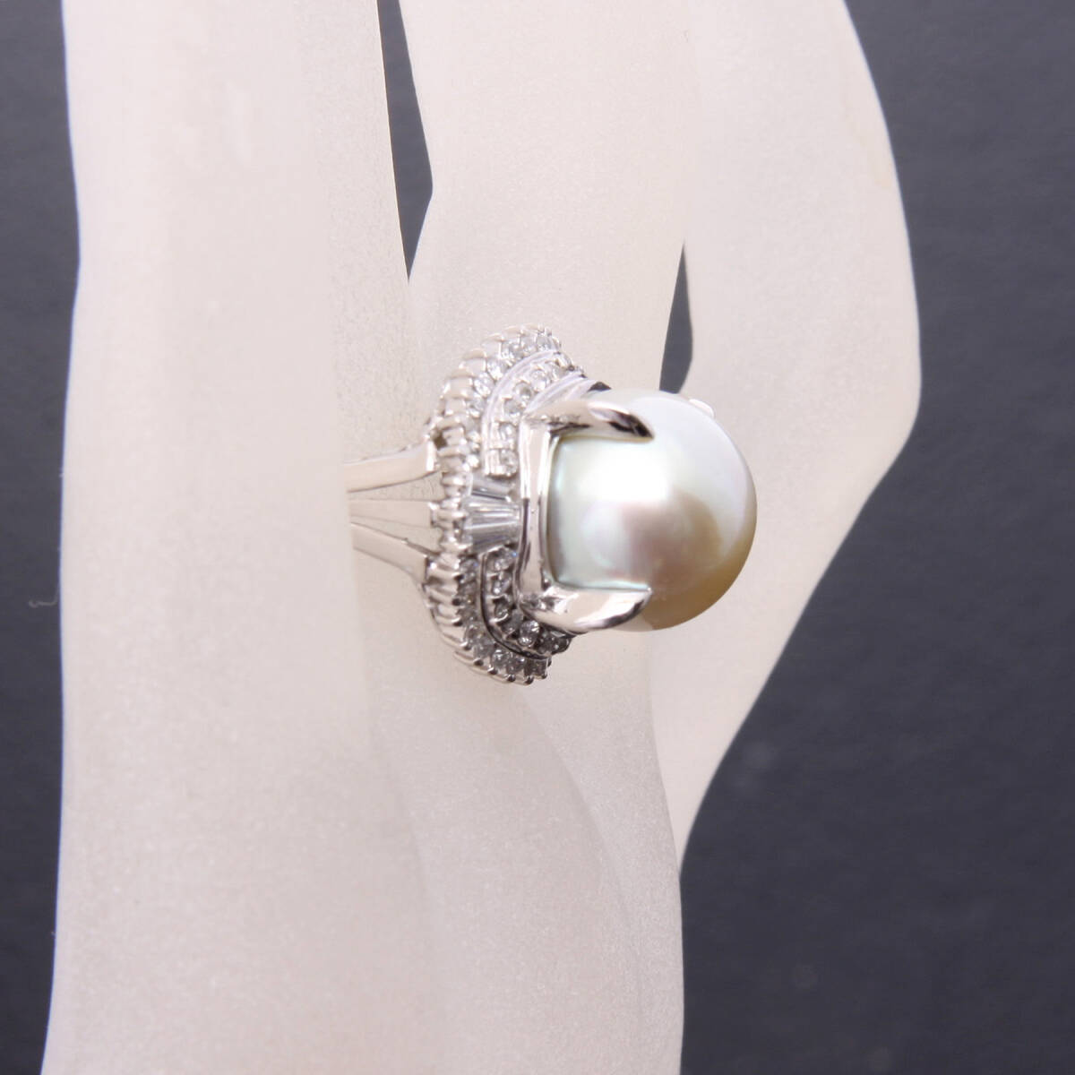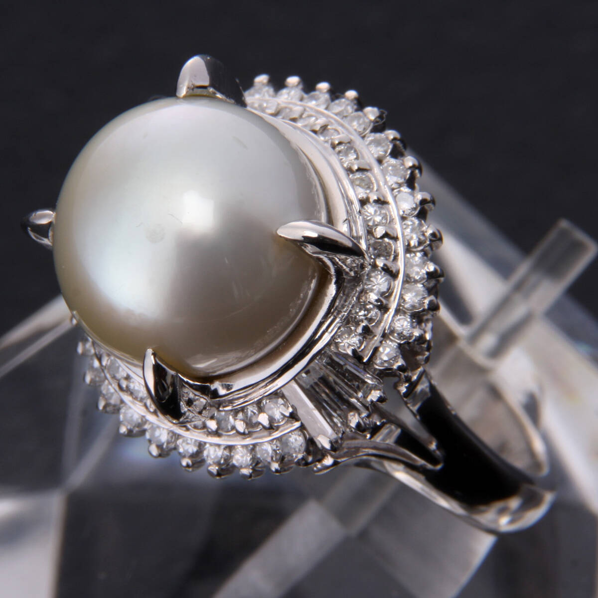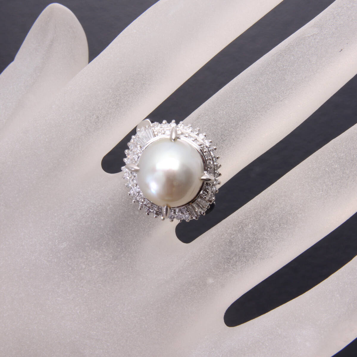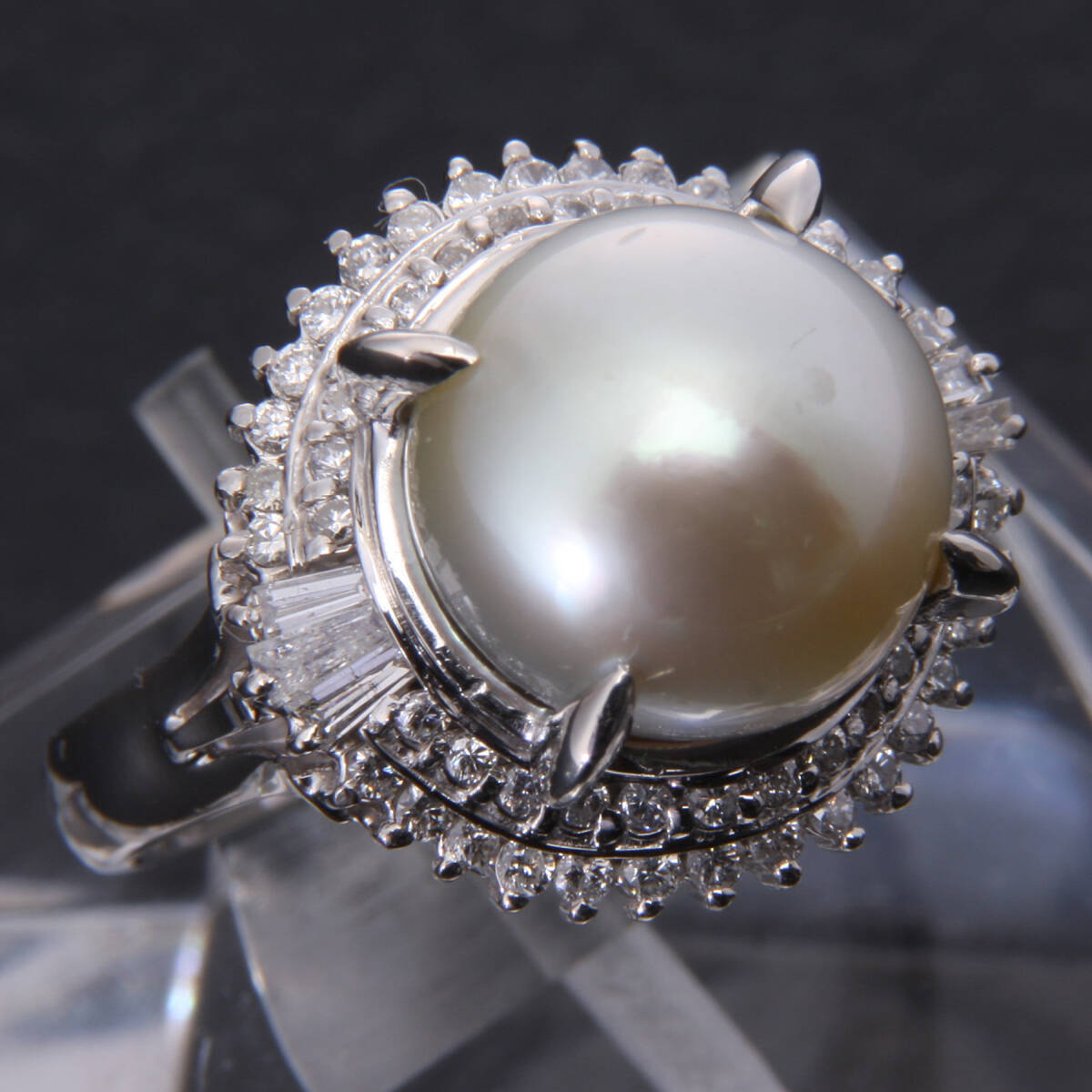ke9911◆磨き済 Pt900リング 白蝶養殖真珠 ダイヤモンド 14.5号
