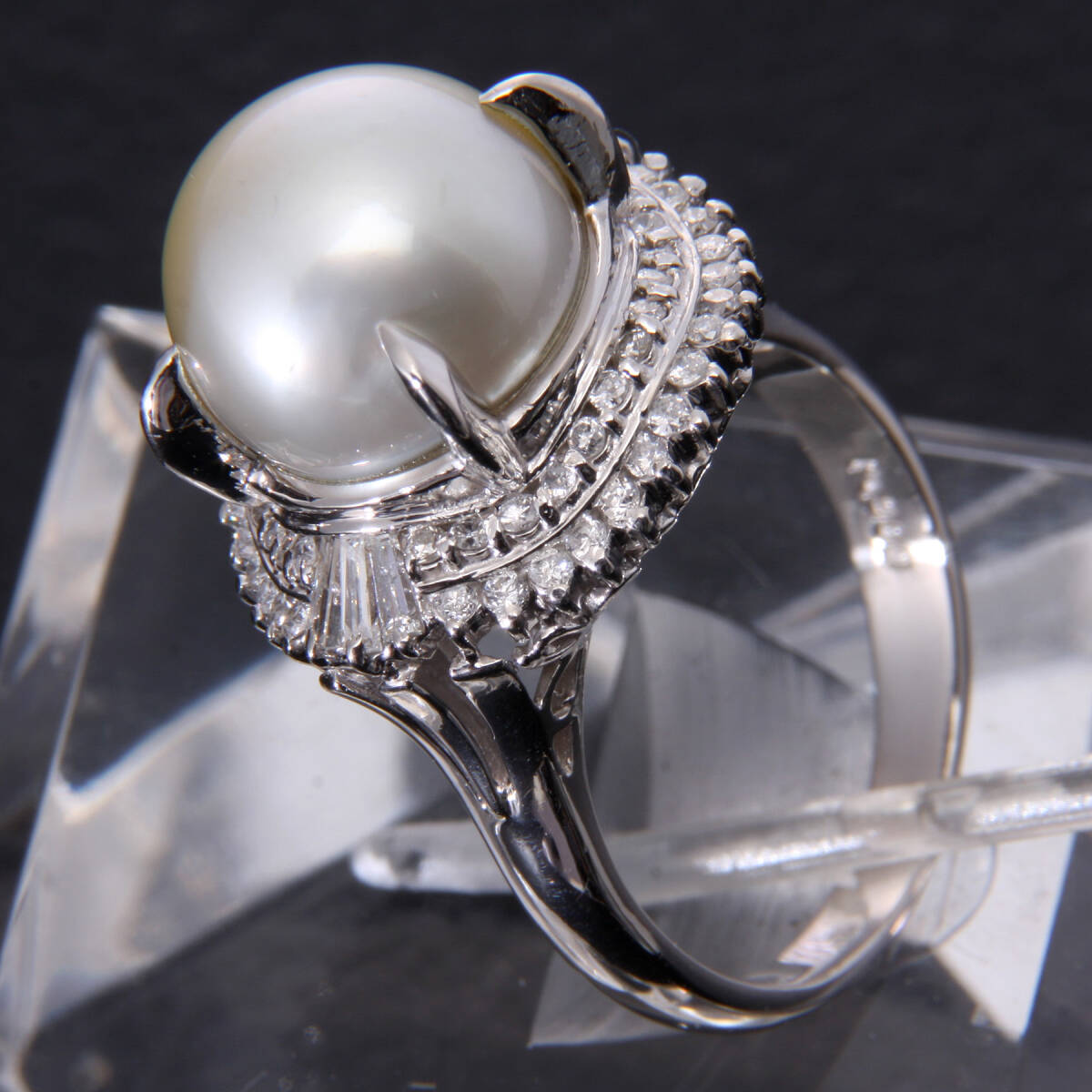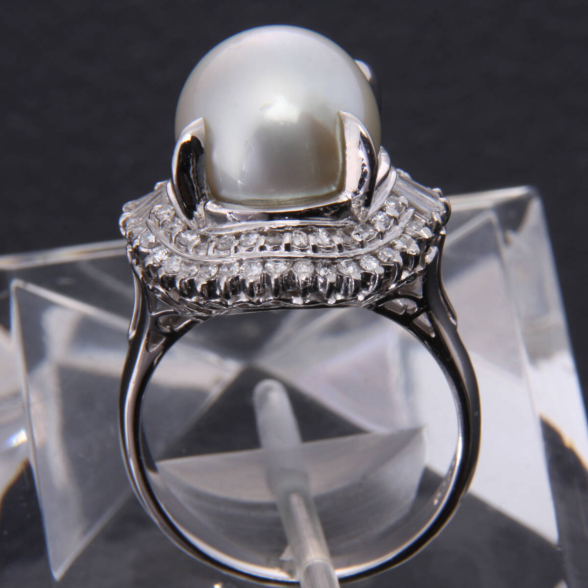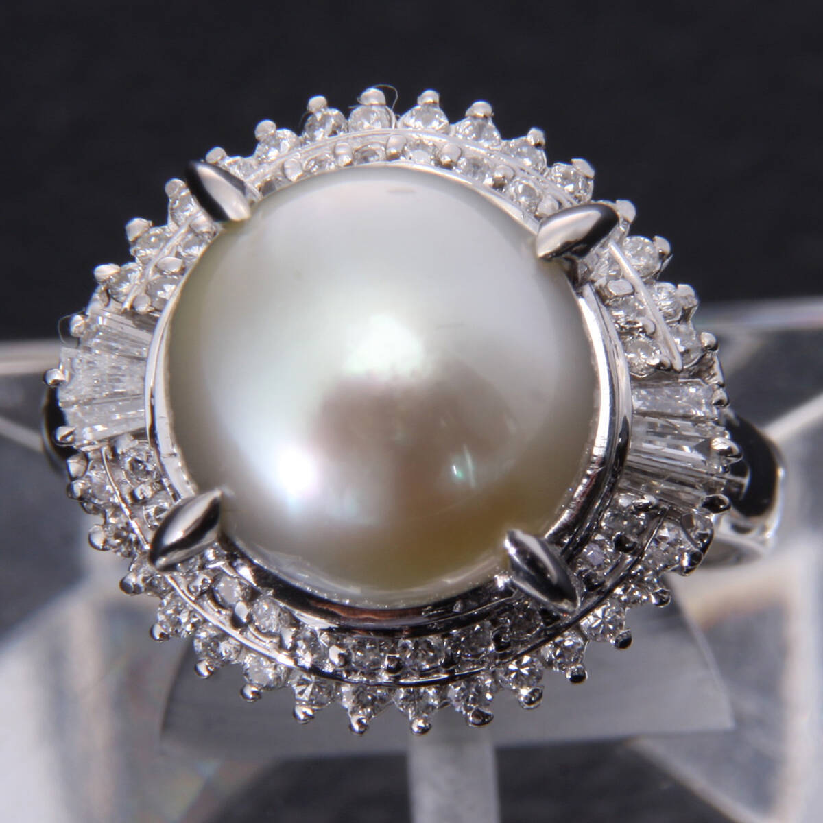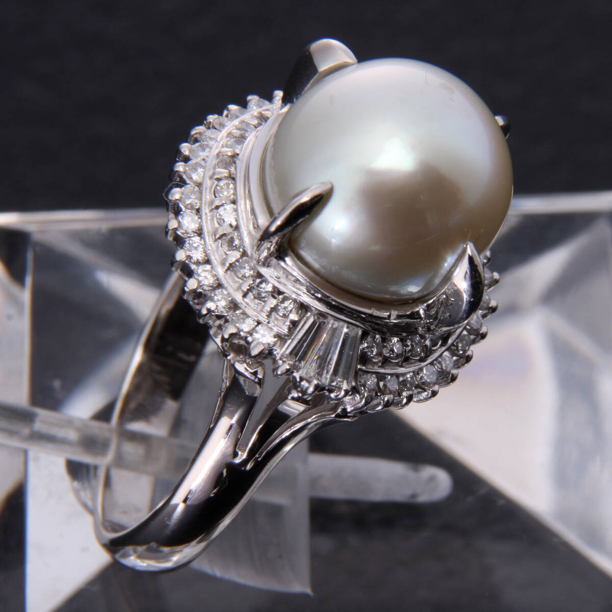 ke9911◆磨き済 Pt900リング 白蝶養殖真珠 ダイヤモンド 14.5号