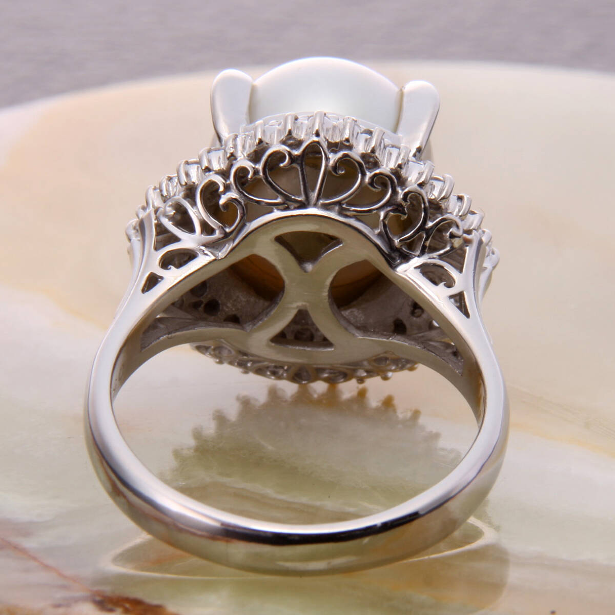 Pt900製、白蝶養殖真珠とダイアモンドの14.5号リングです。