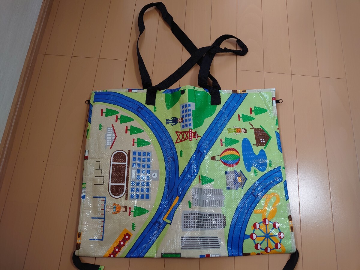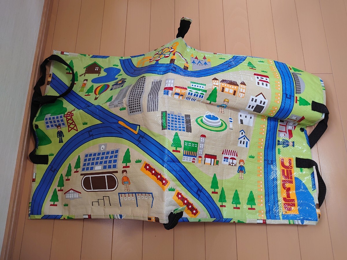 プラレールのレジャーシートバック。ファスナーで広げるとシート(2倍の大きさ)にも。行楽、海に。