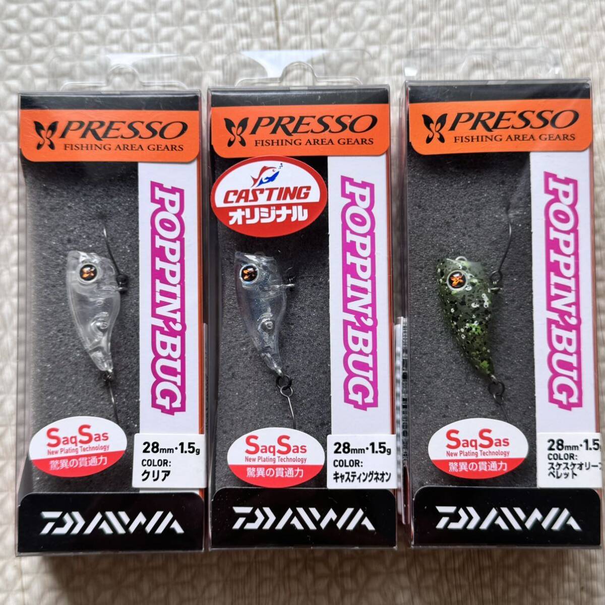 ダイワ プレッソ ポッピンバグ 3点セット エリアトラウト クリア キャスティングネオン スケスケオリーブペレット オリカラ