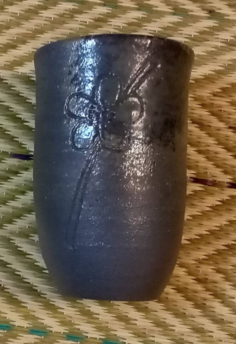 丹波焼 丹波立杭焼 登り窯 梅の彫 湯飲み 高さ 10cm 直径 6.4cm 未使用 炎と灰が降り掛かり、融け合ってできる自然釉の作品です。