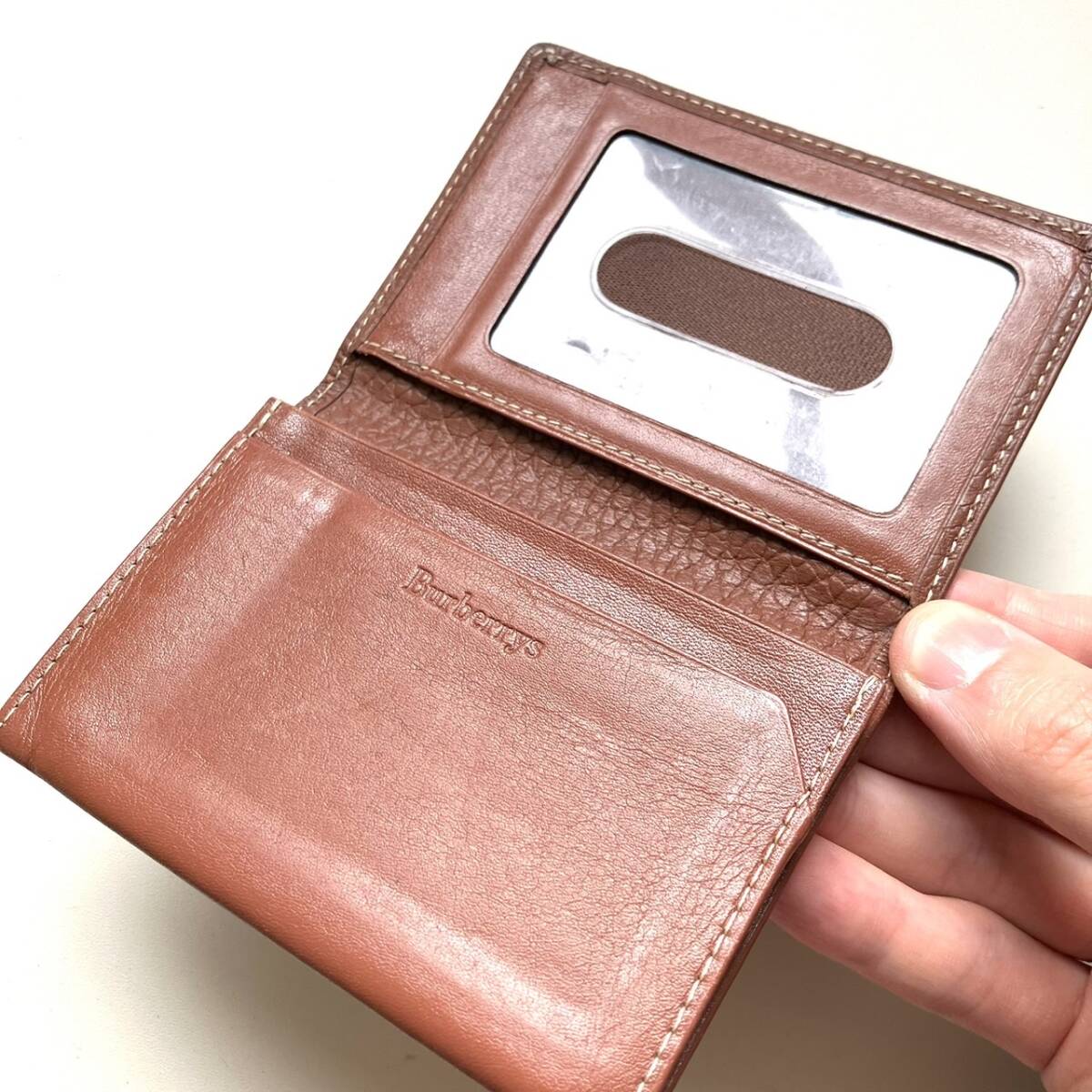 商品説明 | ご覧いただき誠にありがとうございます。 バーバリーズ Burberrys 名刺入れ パスケース になります。 色はキャメルのような明るいブラウンです。 外側の折り曲がるところと背面に色スレがあります。 また、背面のプラスチック板に欠けや切れているところがあります。 その他は形は綺麗です。 ワンポイントでノバチェックがあります。 仕様 縦8cm、横11cm、厚さ1cm、カード入れ×6 |