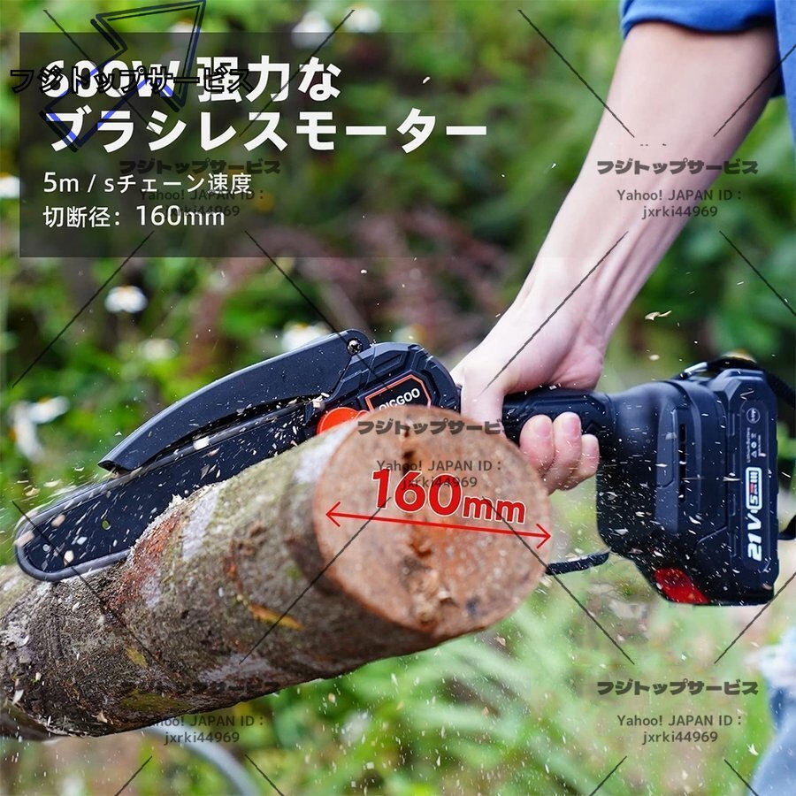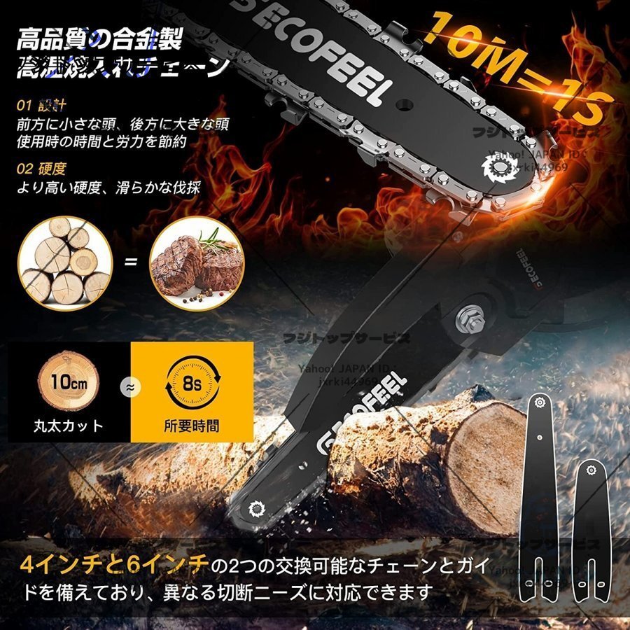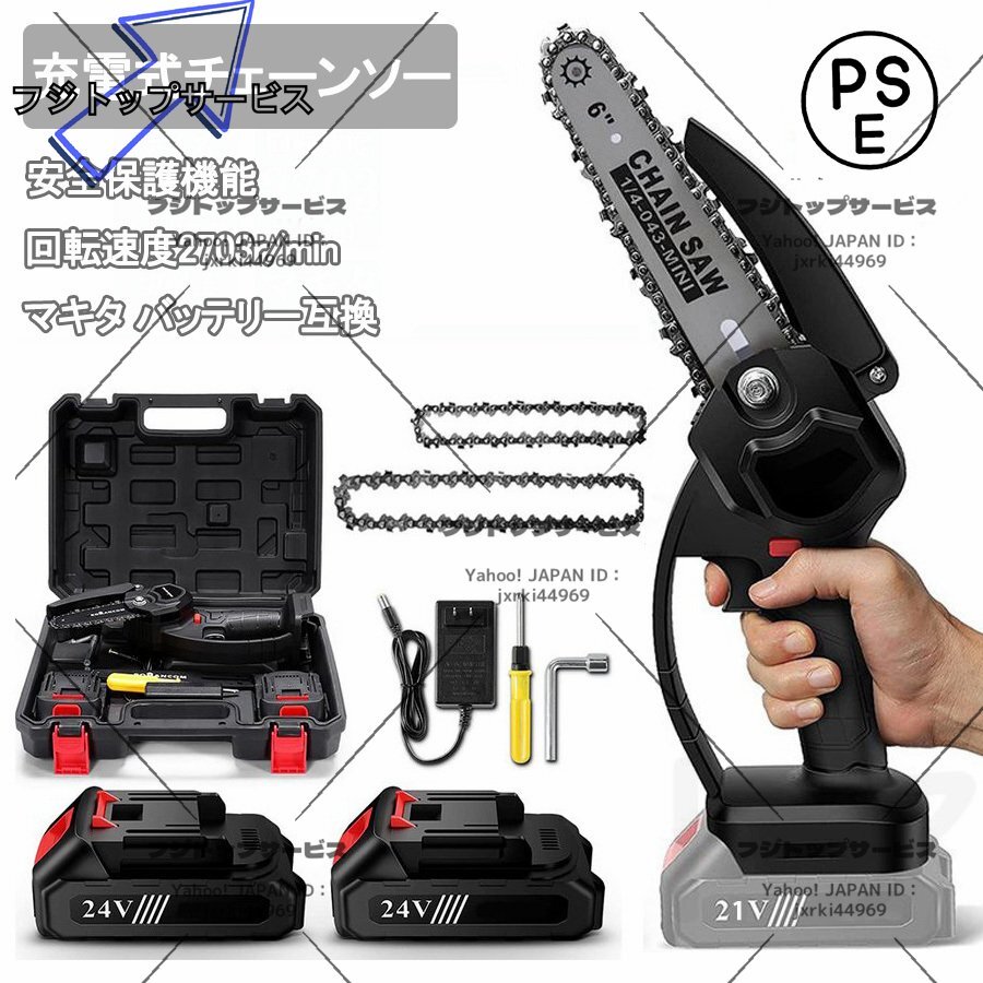 特価 充電式チェーンソー 電動チェンソー 6寸 充電器1個 パッテリー2個マキタ 18Vバッテリー互換 コードレスチェーンソー 収納ケース付き F
