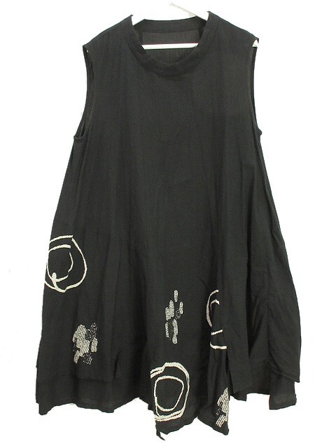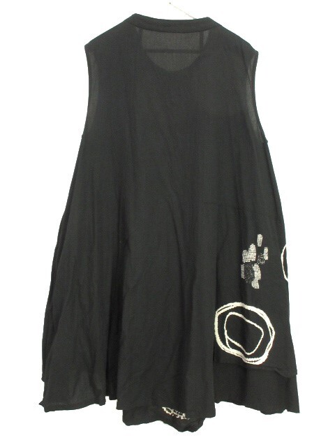 ジウ 慈雨 ロング ジレ チュニック ジャガード 変形 40 ブラック 黒 ノースリーブ 2021年 センソユニコ レディース