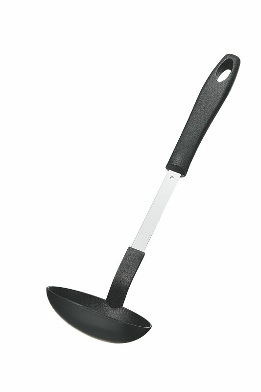 柄はステンレス、先端部は66ナイロン+ガラス繊維を使用しております。製造の際に一体成形を行っており、先端部分が柄から抜け落ちることがありません。また隙間もないために洗いやすく、非常に衛生的です。