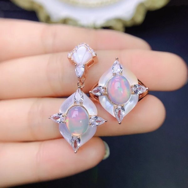 《証明書付き》天然オパールを使用したリングとネックレス用ペンダントのセット