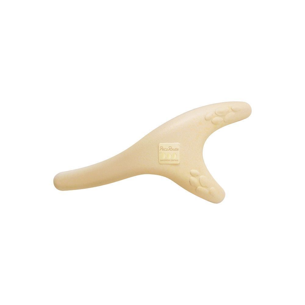 風になびく稲穂のイメージ。丸みのあるフォルムは、歯や歯茎を傷めにくく、お口にやさしい。3つに分かれた先端は、小さなお口、鼻ぺちゃ、鼻が長い子、色々な子が噛みやすい形状設計。アーチ形状は常にどこかが起き上がる部分があり、ホールドしやすく噛みやすい。