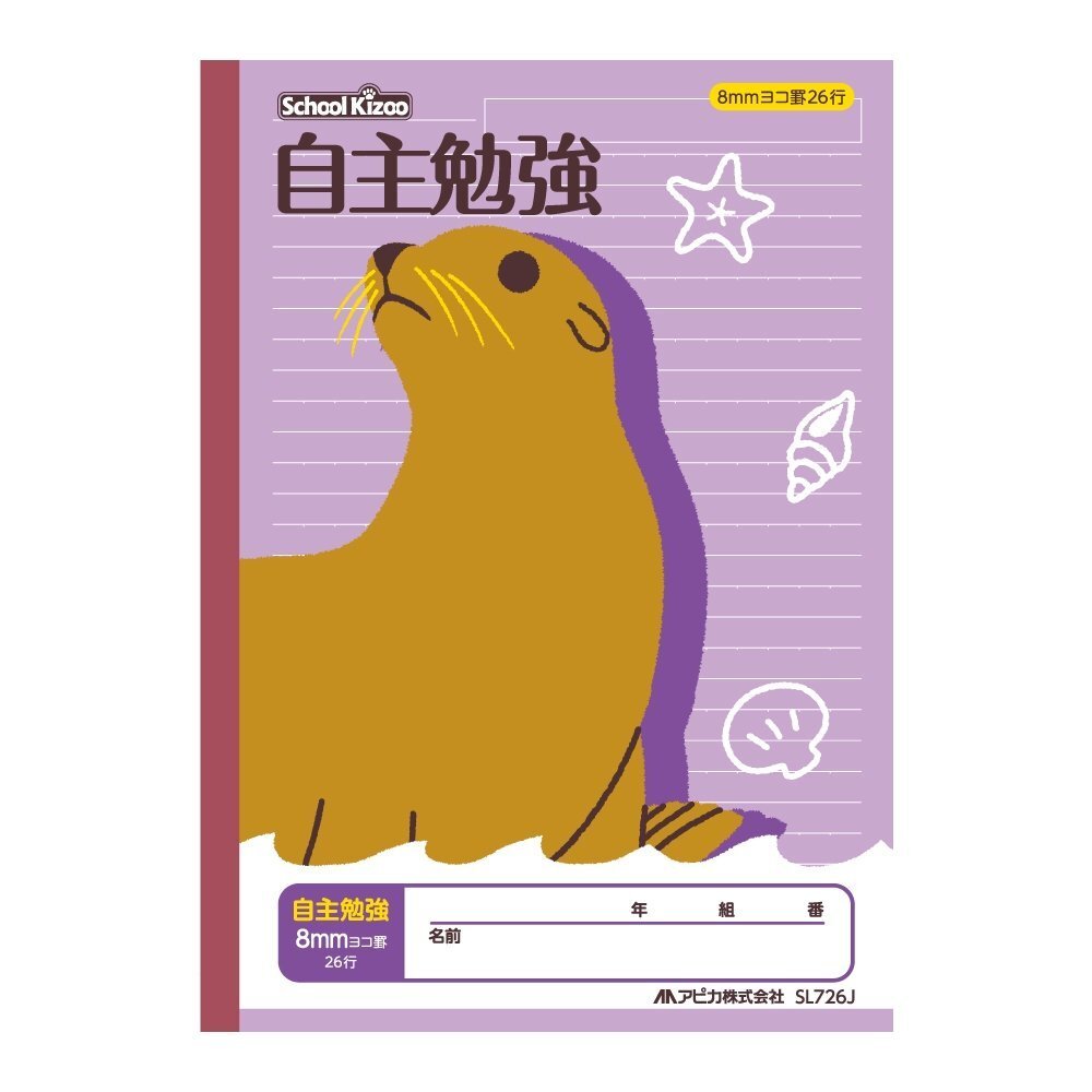 スクールキッズは、地球上で暮らすさまざまな動物の姿を可愛いイラストと華やかな色彩で表現した学習ノートです。古紙パルプ配合率100%の筆記用中性再生紙を使用、子どもたちが最も書きやすいとされた罫線色を採用しています。