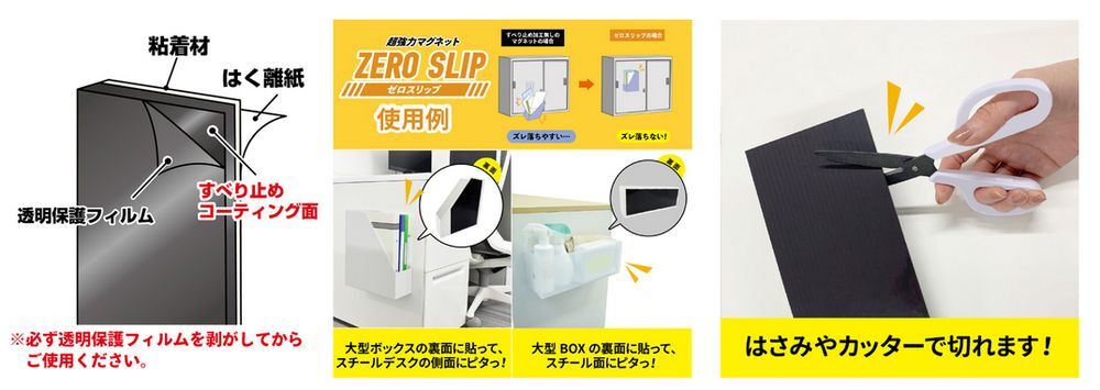 ○強磁力の異方性マグネットに特殊すべり止めコートを塗布した、ズレに強い固定用マグネットシート。