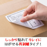◆しっかり貼れてキレイニはがせる再剥離タイプ! ◆レーザでもインクジェットでも綺麗な仕上がり◆台紙から剥がしやすいように剥離紙にスリットが2本入っています◆一時的な掲示物などに◆個人情報(宛名等)が印刷されているシールも廃棄できるので、情報の流出防止にも役立ちます!剥離紙(台紙)は樹脂ラミネート加工をしていませんので、そのまま雑誌古紙としてリサイクルできます。