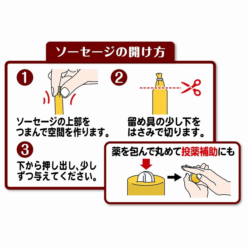 生後3ヵ月のパピーからシニア犬まで安心の超やわらかソーセージタイプ。薬を包んで丸めて投薬補助にも!お得な30本入!