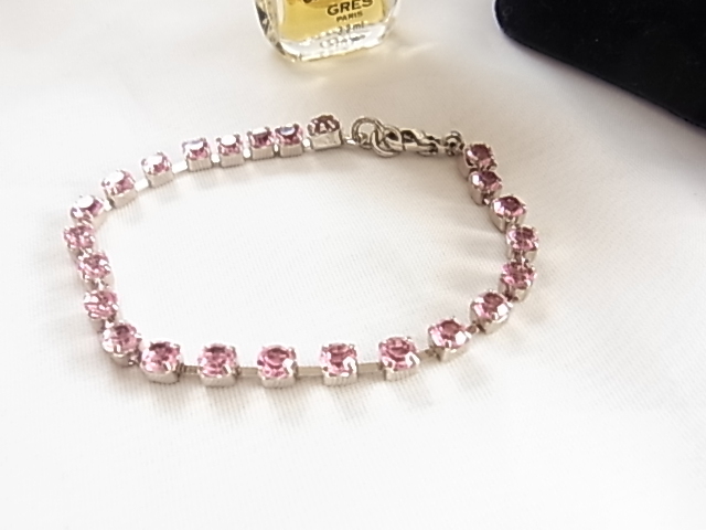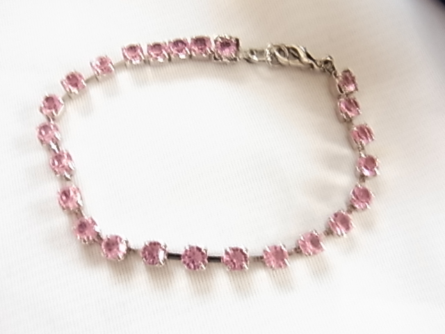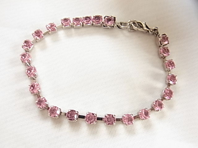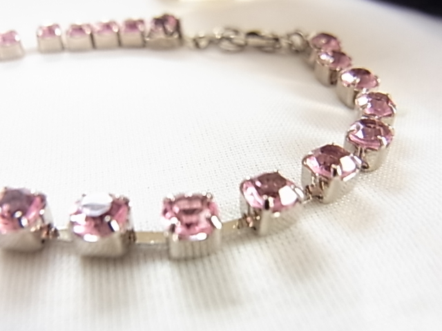 キラキラ輝くピンク色のラインストーン 連なり美しい 輝石 煌めき 大人ガーリーなブレスレット◎