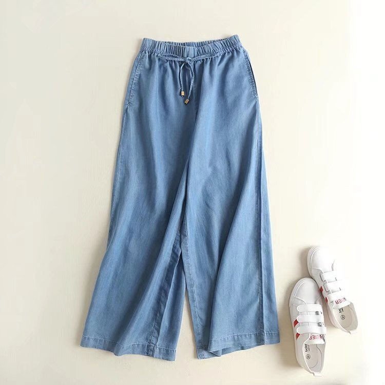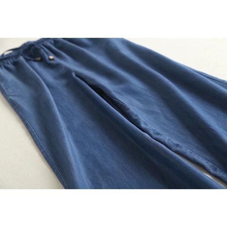 OHJ1361☆ワイドパンツ ガウチョパンツ デニムパンツ ワイドパンツ ガウチョパンツ デニムパンツ ロング丈 ゆったり ボトムス ウエストゴム