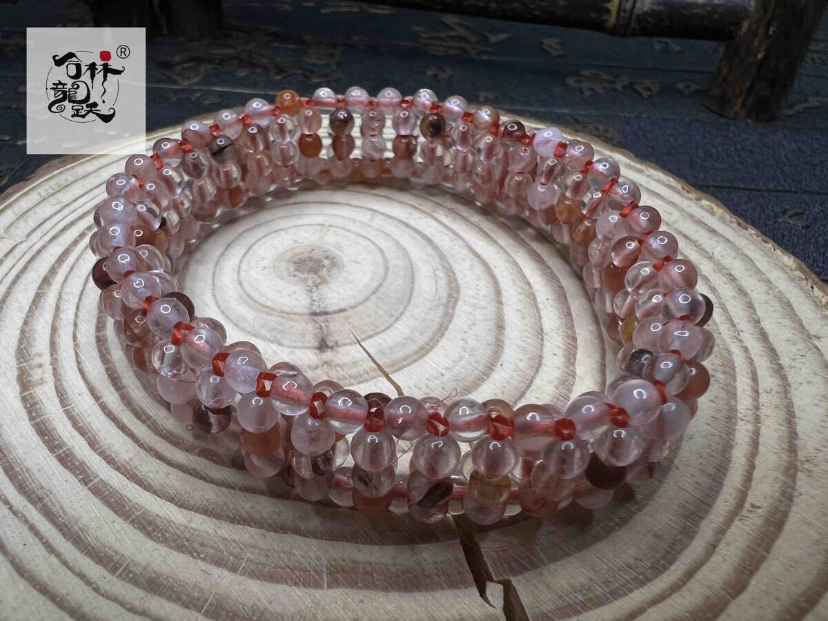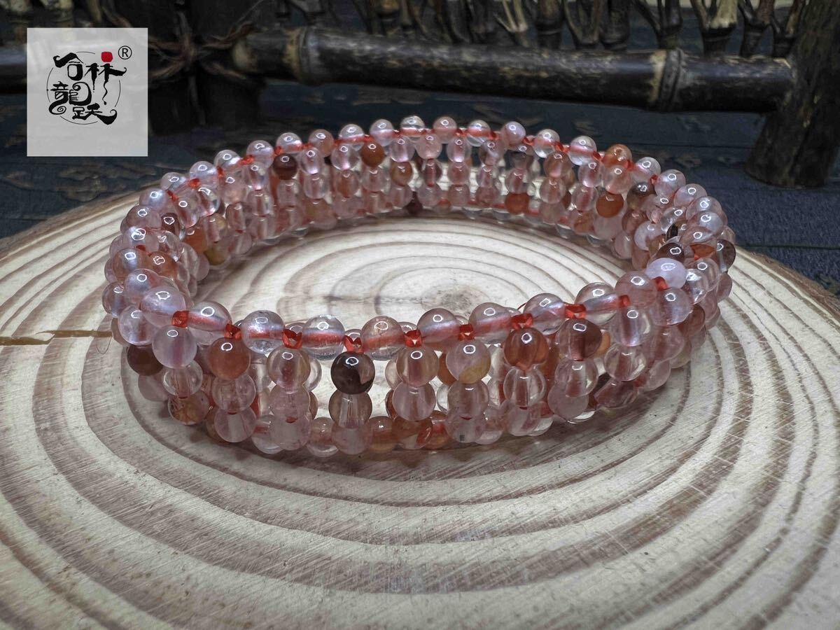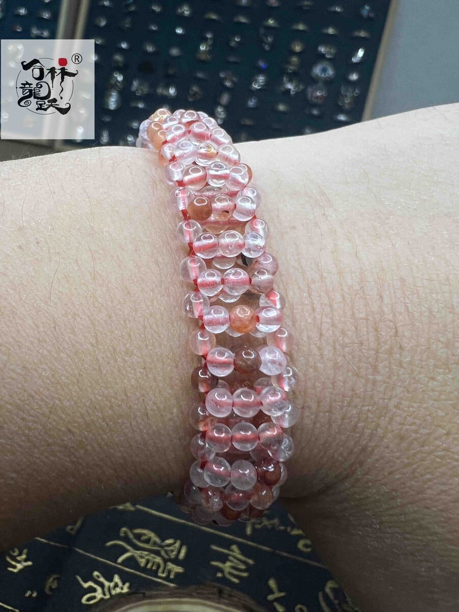 商品名:天然美しい広面 ピンク水晶 ブレスレット