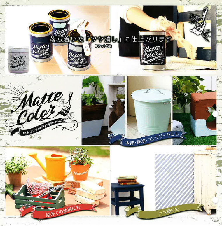 ●水性で塗りやすく、低臭タイプの屋内外兼用塗料です。