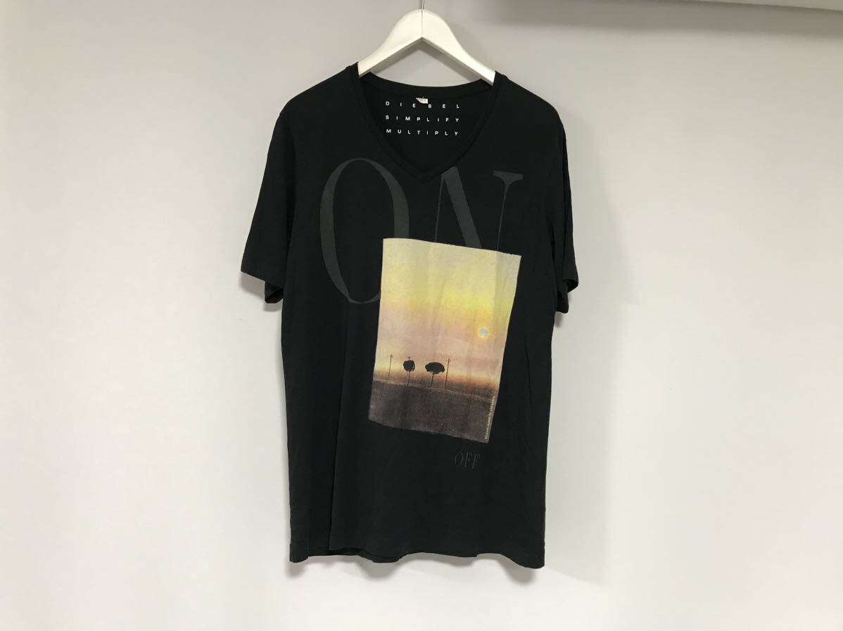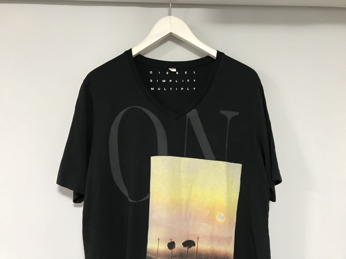 商品名:本物ディーゼルDIESELコットンプリントVネック半袖Tシャツメンズサーフアメカジミリタリーワークビジネススーツモード黒ブラックSトルコ製