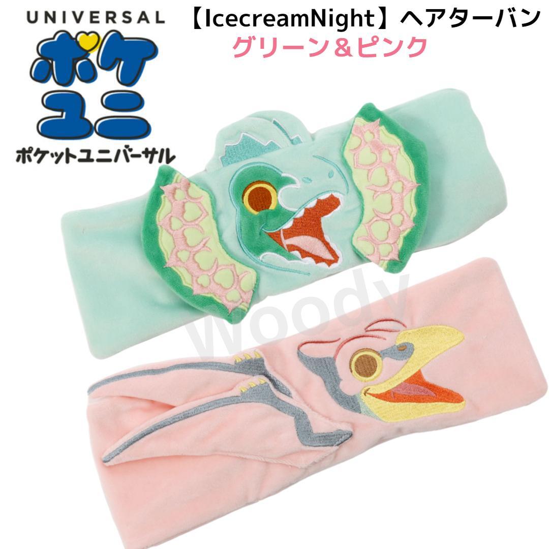 【新品未使用】ポケユニ カ ヘアターバン 恐竜柄 2個セット各1 グリーン&ピンク柄 となります。