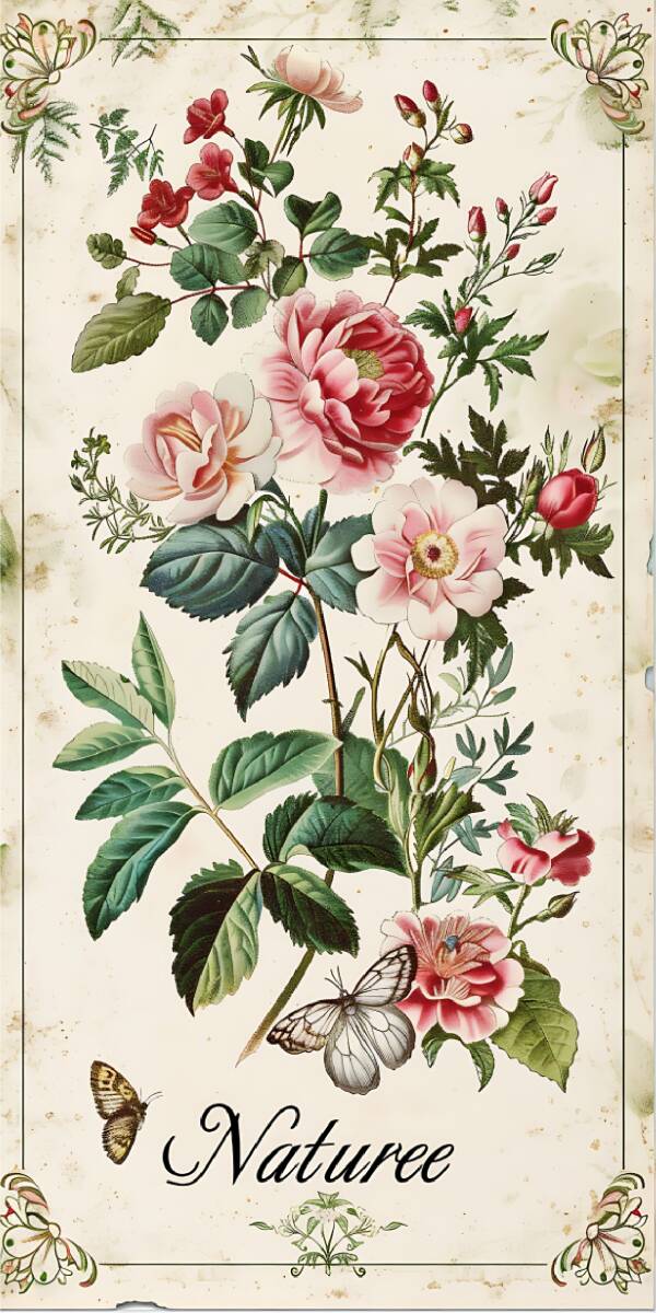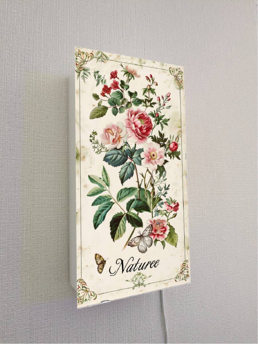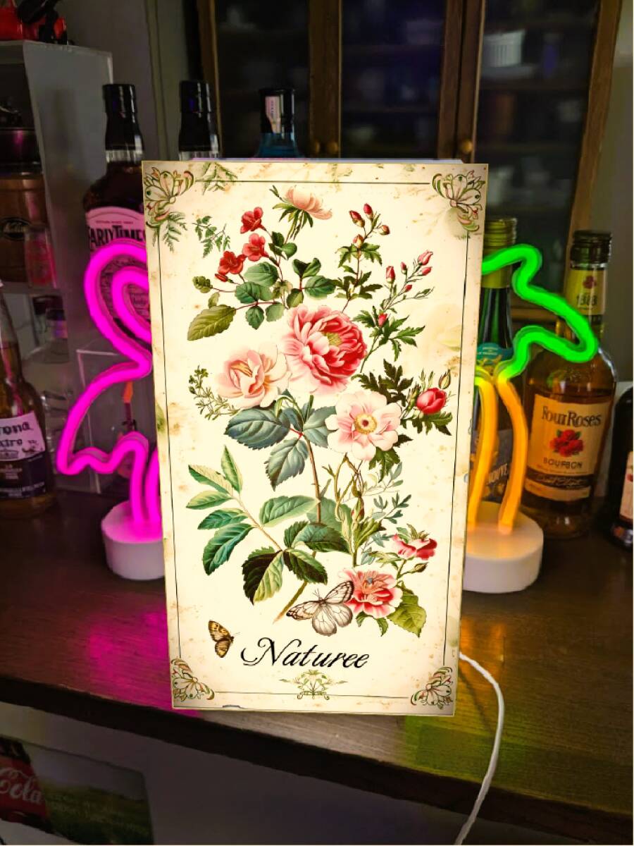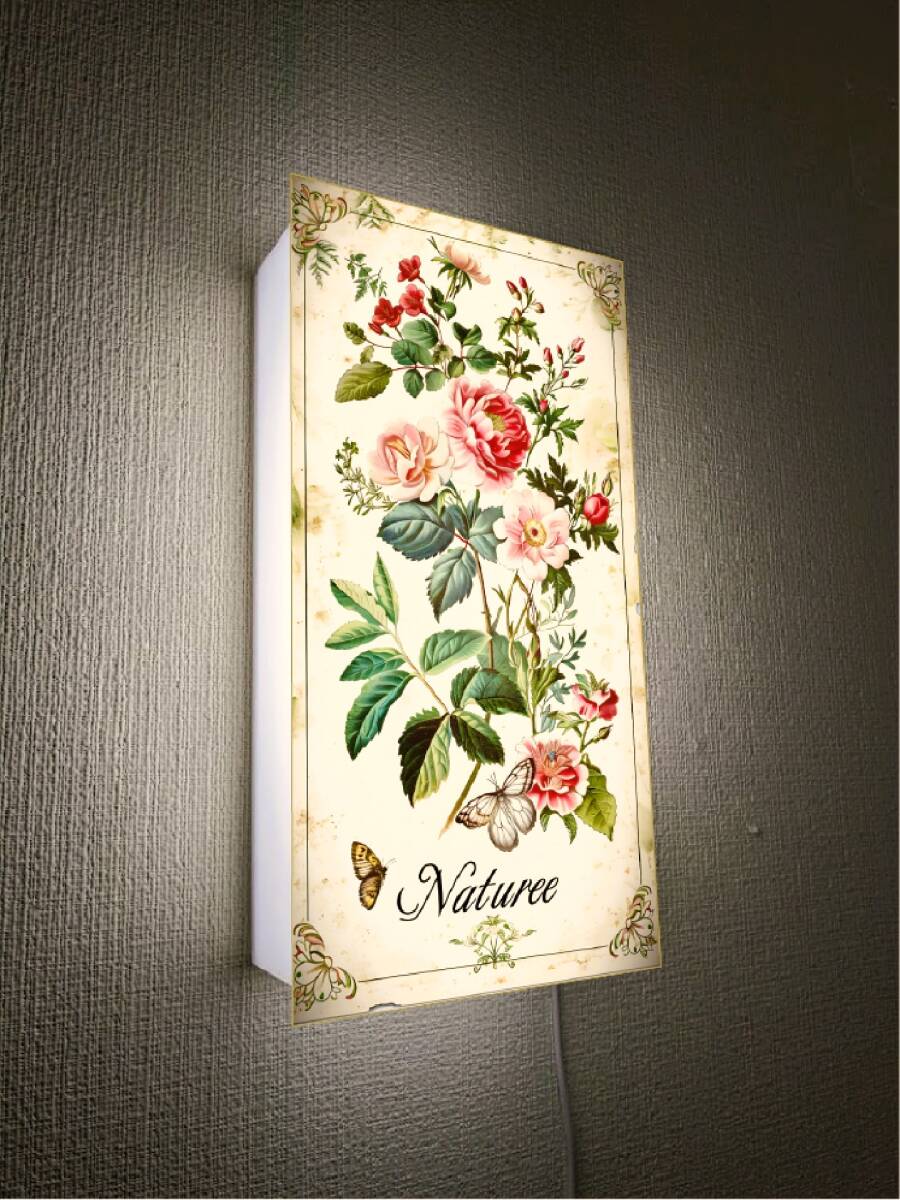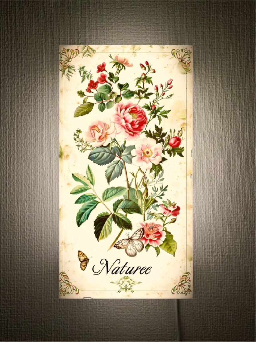 【花と蝶々 イラスト ビンテージ】壁掛け電飾看板Lサイズです★