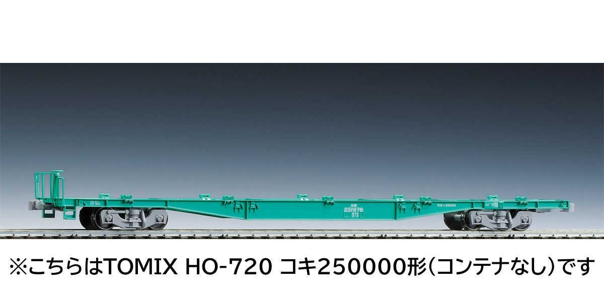 最後の参考写真のコキ250000形(コンテナなし)は売り切れました。