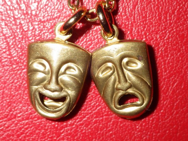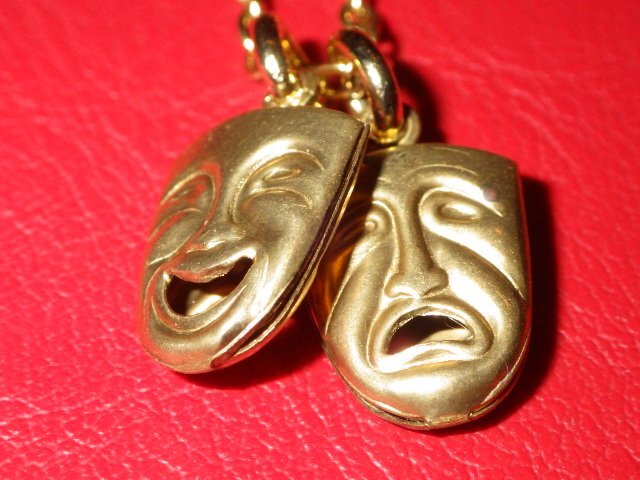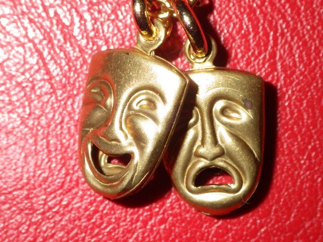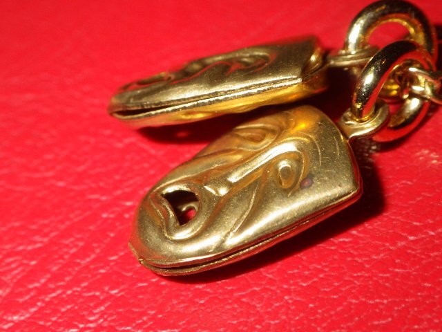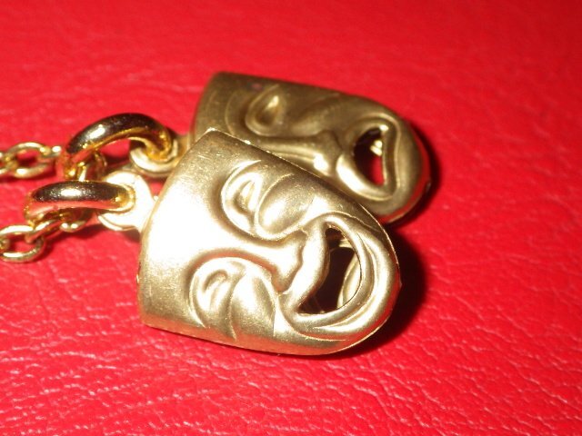トップは裏表に表情の良い泣き顔と笑い顔があしらわれており存在感がございますが、小ぶりでさりげなく着用していただけるかと思います♪