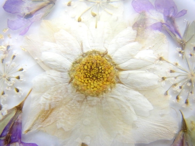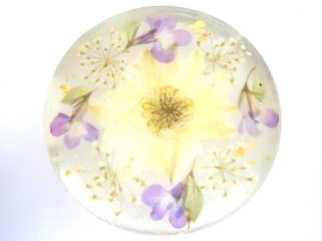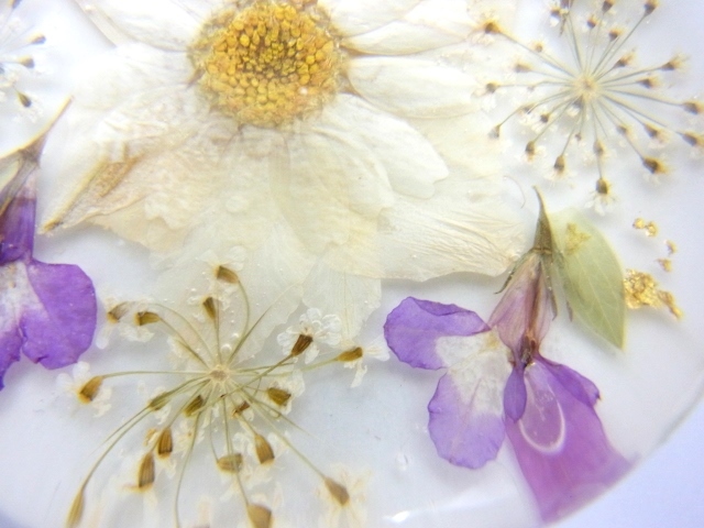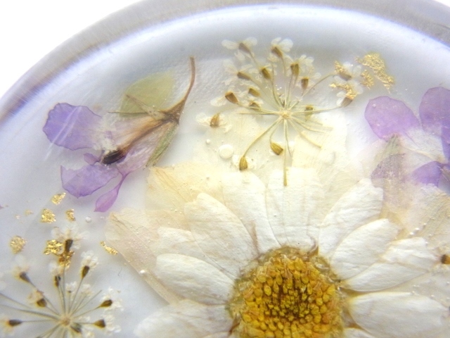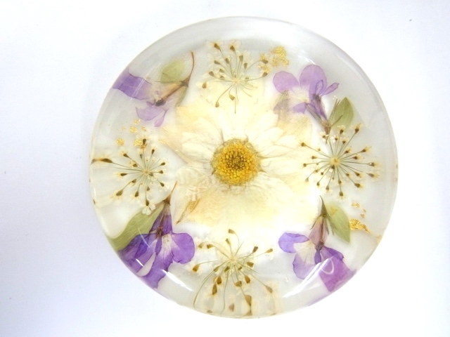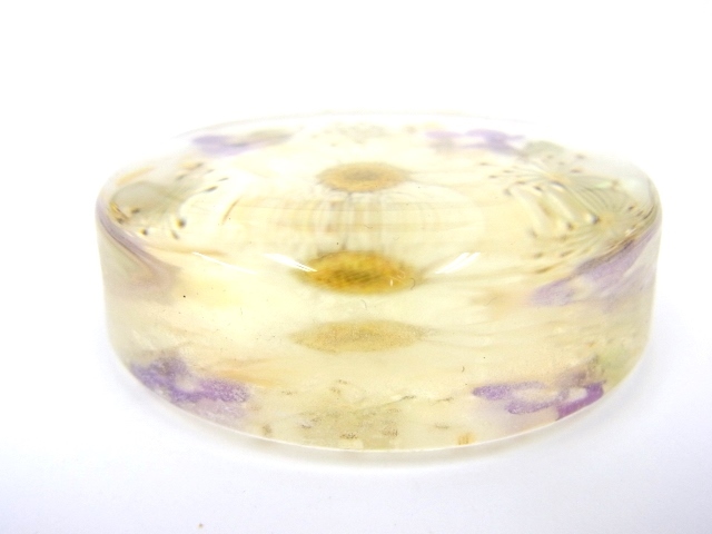 | e11989 ペーパーウエイト 花 丸形 植物標本 インテリア オブジェ | |