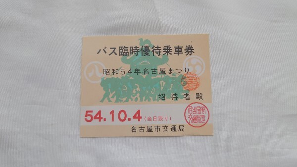 ▲名古屋市交通局▲昭和54年名古屋まつり バス臨時優待乗車券▲当日限り