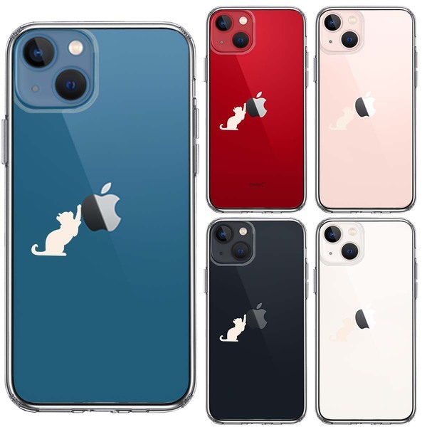 iPhone13mini ケース クリア猫 リンゴ キャッチ ホワイト スマホケース 側面ソフト 背面ハード ハイブリッド