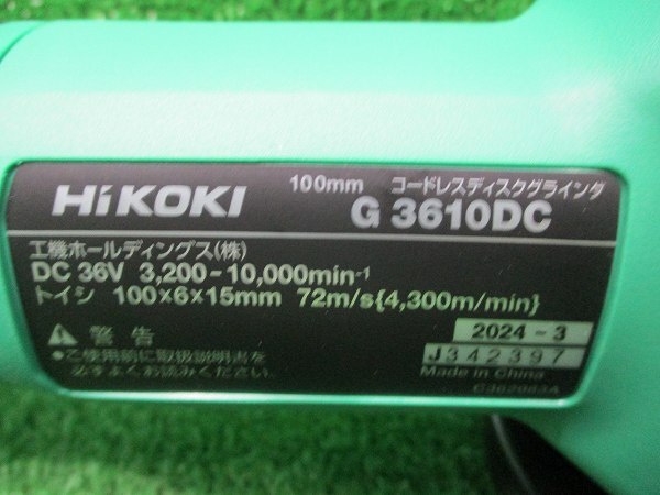 【HIKOKI/ハイコーキ】G3610DC 2XPZ 100mm ディスクグラインダー バッテリー 2コ 充電器 9546