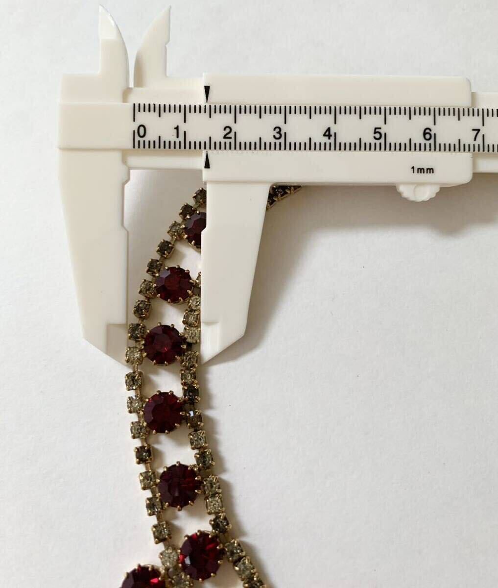 ボヘミアンガーネットを想わせるような情熱を感じる深い赤とは対照的に涼やかなクリアストーンのバランスも抜群です。恐らくダンスなどの舞台用に作られたコスチュームジュエリーなのではないかと思います。